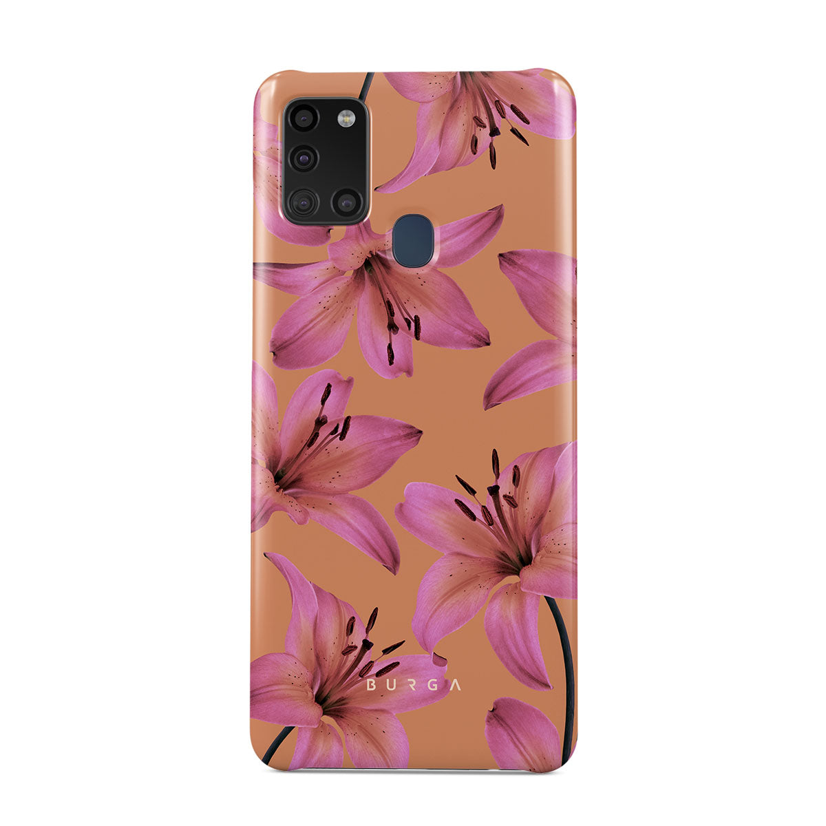 A design inspired by the effortless bloom of lilies, reflecting the beauty of embracing life's spontaneous moments. Like lilies that thrive untamed, this case reminds us to flourish in the face of change. Embodying the magic of life's unpredictable tapestry with our Eden Samsung Galaxy A21s 4G phone case.