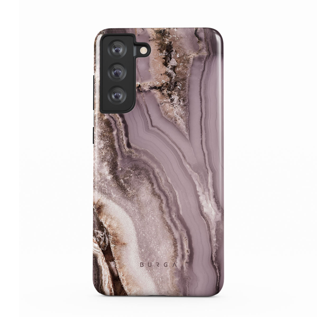 Make a fashion statement with Samsung Galaxy S21 FE phone case that reminds of a geode in the softest mauve shade. A phone case that is both pretty and protective is a best friend of a fashion lover.