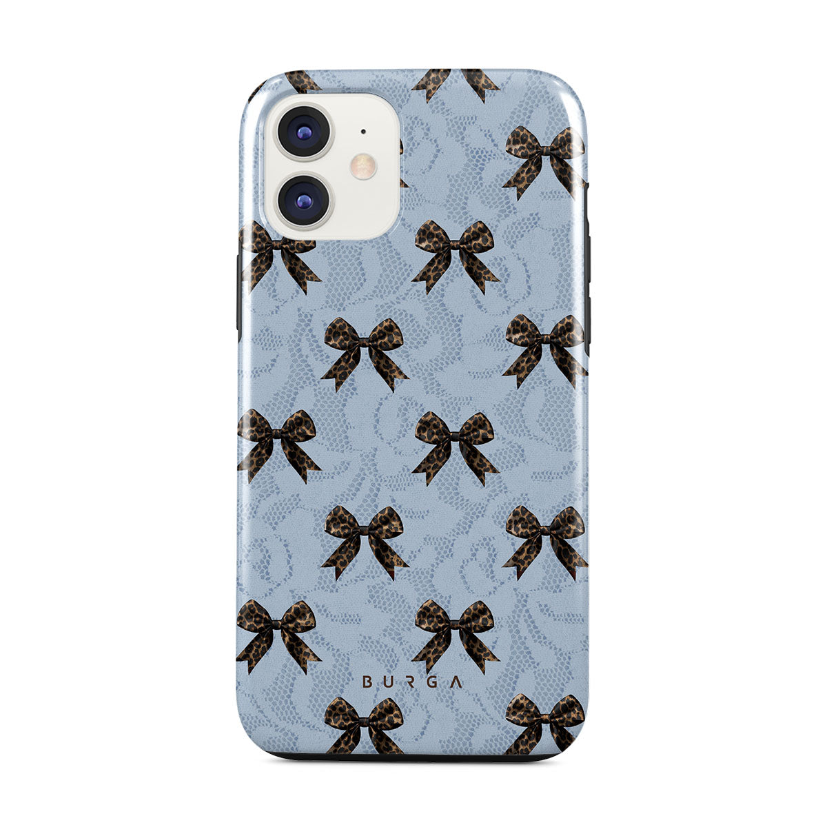 For those who command attention with subtle elegance, our Fashionista iPhone 11 phone case design is your go-to. A soft blue background, accented by dark grey bows and subtle lace patterns, exudes polished, effortless style. It's quiet confidence with a hint of charm.