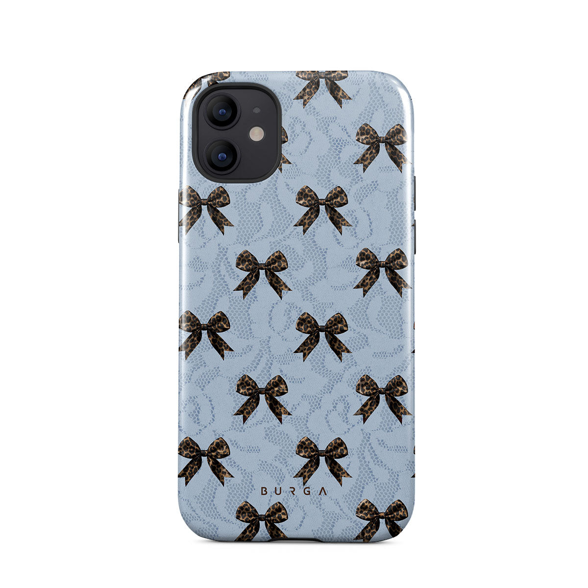 For those who command attention with subtle elegance, our Fashionista iPhone 12 phone case design is your go-to. A soft blue background, accented by dark grey bows and subtle lace patterns, exudes polished, effortless style. It's quiet confidence with a hint of charm.