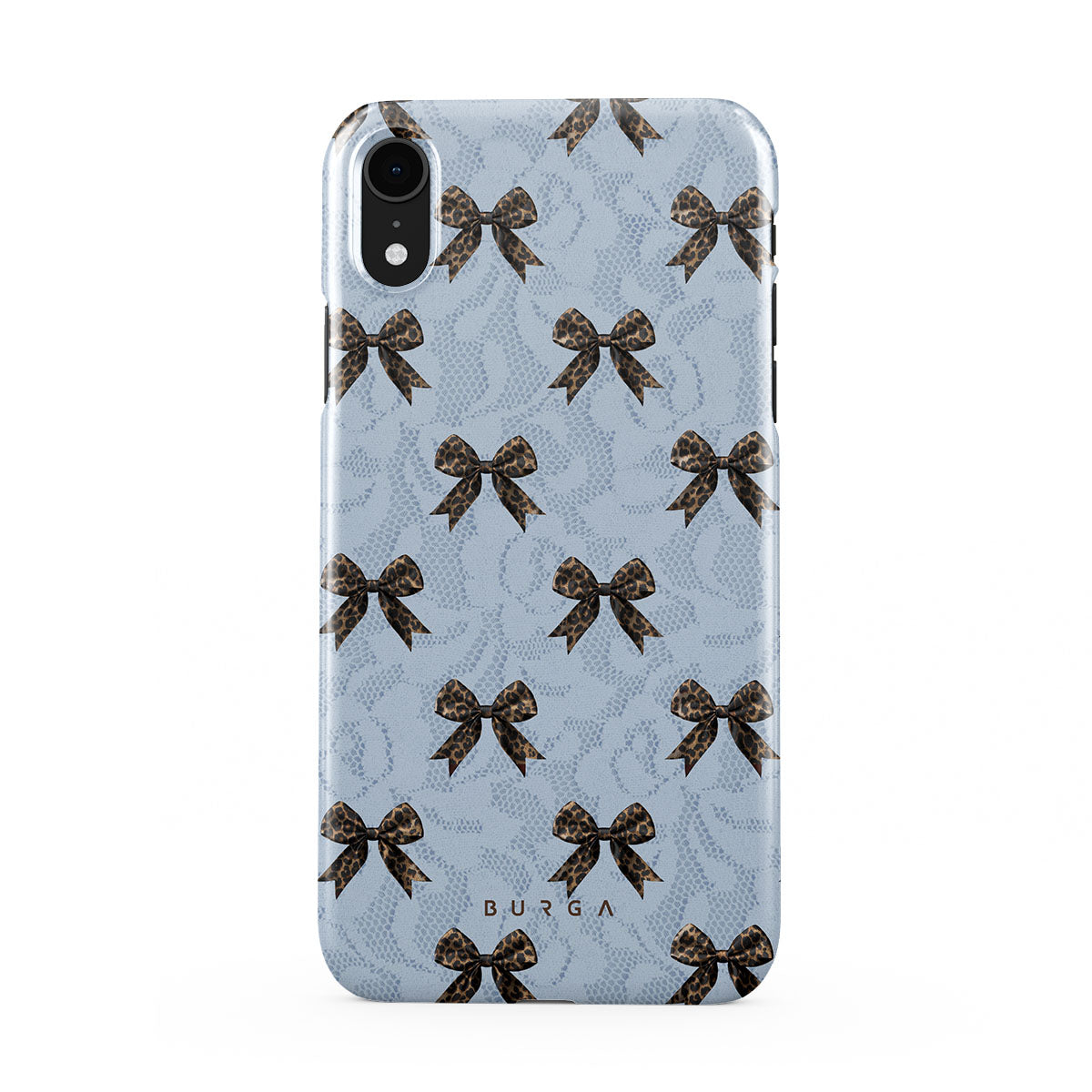 For those who command attention with subtle elegance, our Fashionista iPhone XR phone case design is your go-to. A soft blue background, accented by dark grey bows and subtle lace patterns, exudes polished, effortless style. It's quiet confidence with a hint of charm.