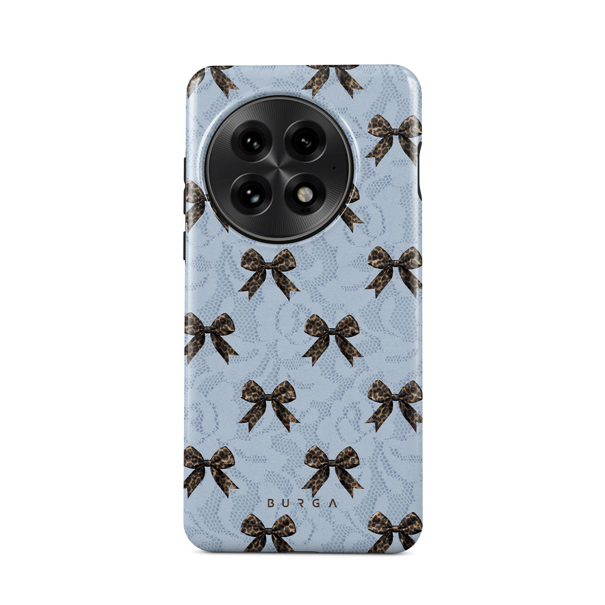 For those who command attention with subtle elegance, our Fashionista OnePlus 13 phone case design is your go-to. A soft blue background, accented by dark grey bows and subtle lace patterns, exudes polished, effortless style. It's quiet confidence with a hint of charm.