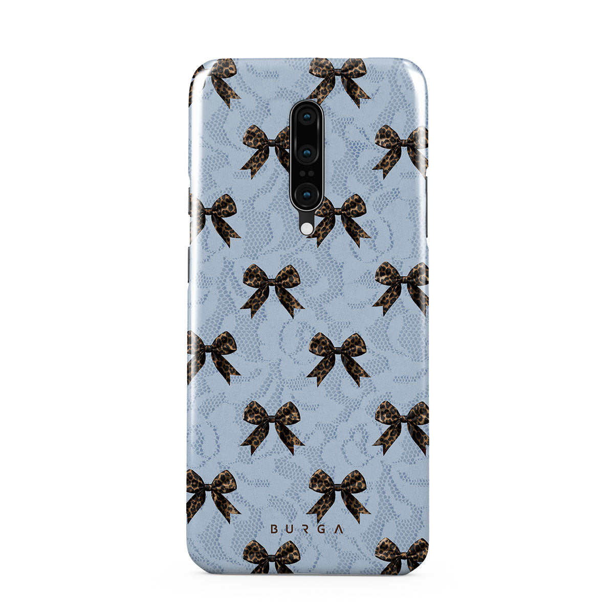 For those who command attention with subtle elegance, our Fashionista OnePlus 7 Pro / 7T Pro phone case design is your go-to. A soft blue background, accented by dark grey bows and subtle lace patterns, exudes polished, effortless style. It's quiet confidence with a hint of charm.