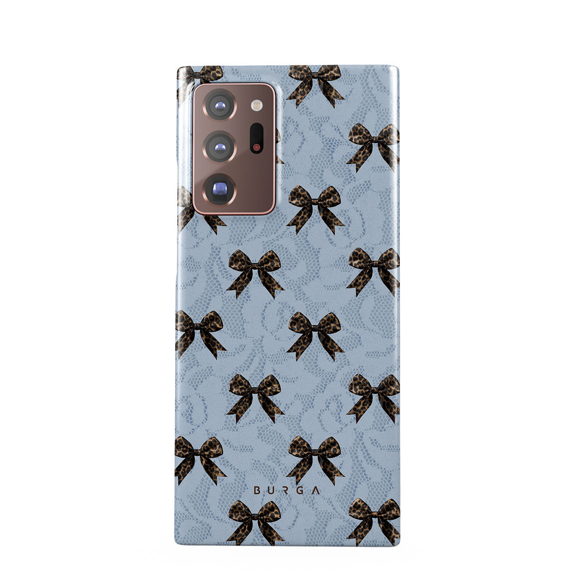 For those who command attention with subtle elegance, our Fashionista Samsung Galaxy Note 20 Ultra 4G / 5G phone case design is your go-to. A soft blue background, accented by dark grey bows and subtle lace patterns, exudes polished, effortless style. It's quiet confidence with a hint of charm.