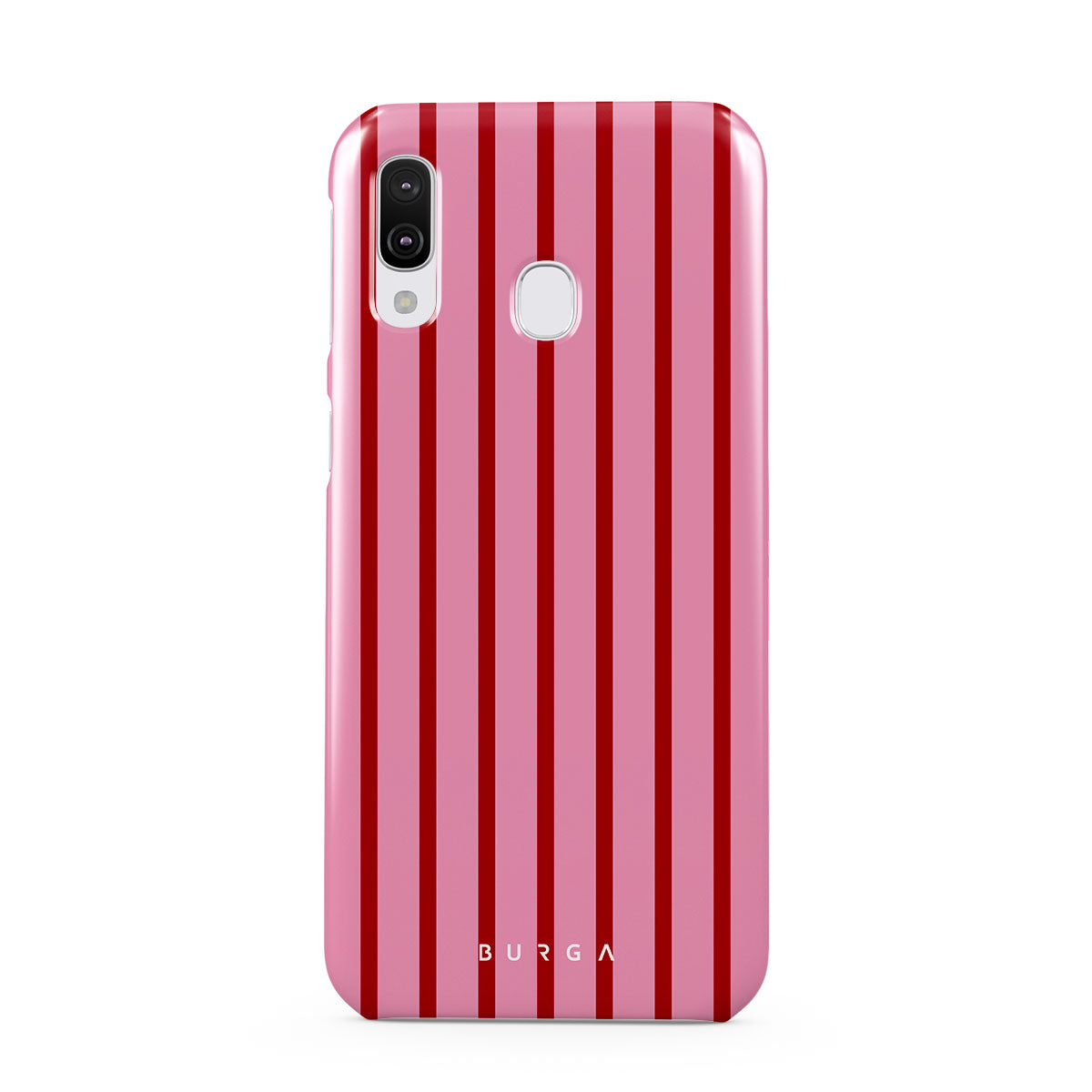 Step right up to the sweet charm of our Favorite Bikini Samsung Galaxy A40 phone case design. This vibrant array of pink and magenta stripes evokes memories of summer funfairs and whimsical candy canes.