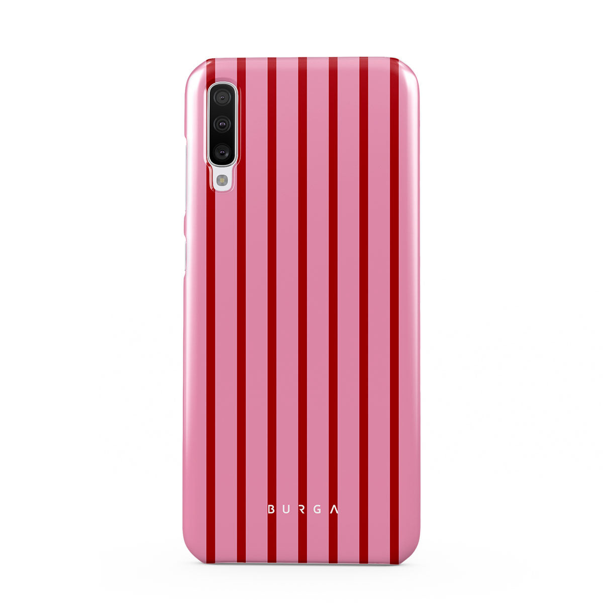 Step right up to the sweet charm of our Favorite Bikini Samsung Galaxy A70 phone case design. This vibrant array of pink and magenta stripes evokes memories of summer funfairs and whimsical candy canes.