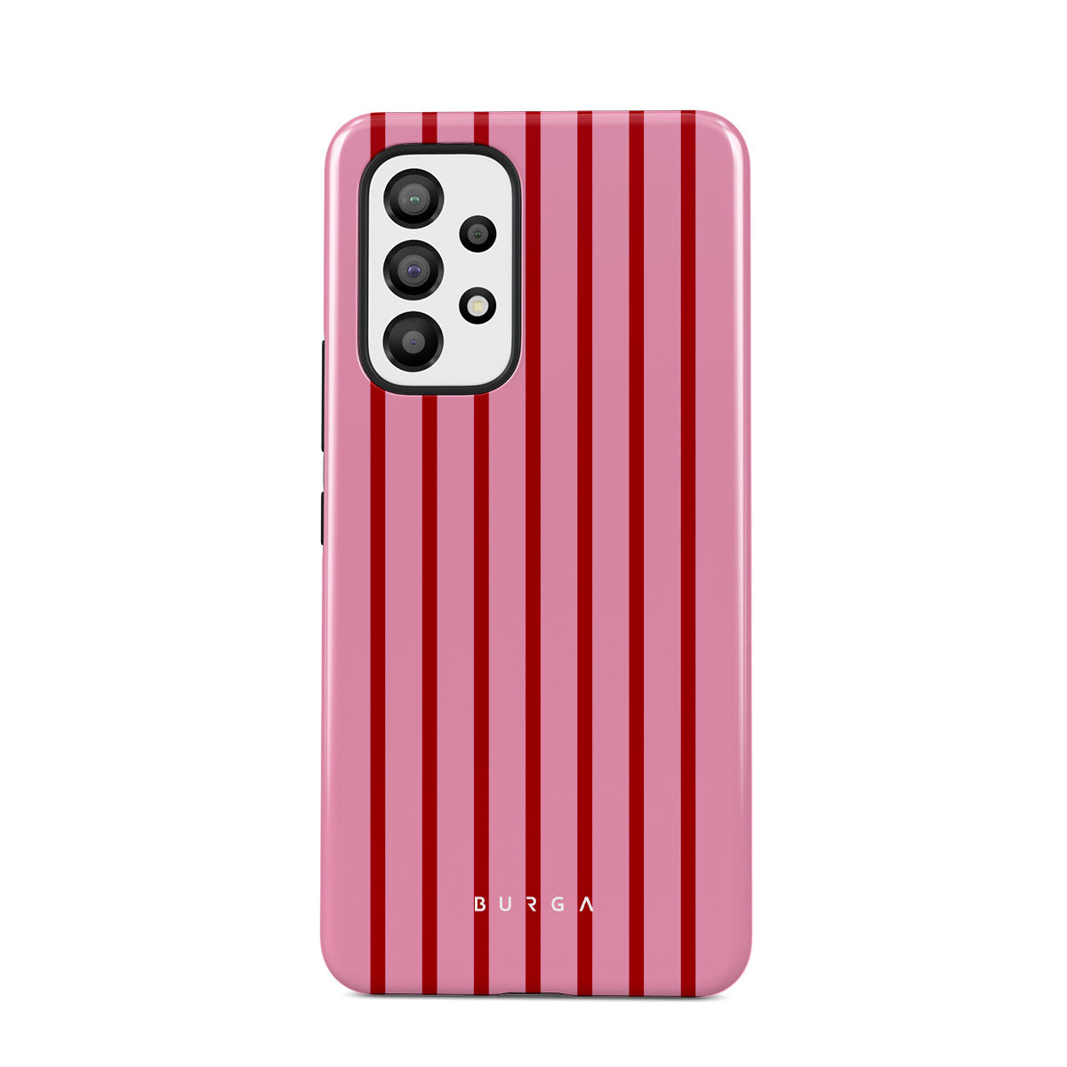 Step right up to the sweet charm of our Favorite Bikini Samsung Galaxy A73 phone case design. This vibrant array of pink and magenta stripes evokes memories of summer funfairs and whimsical candy canes.