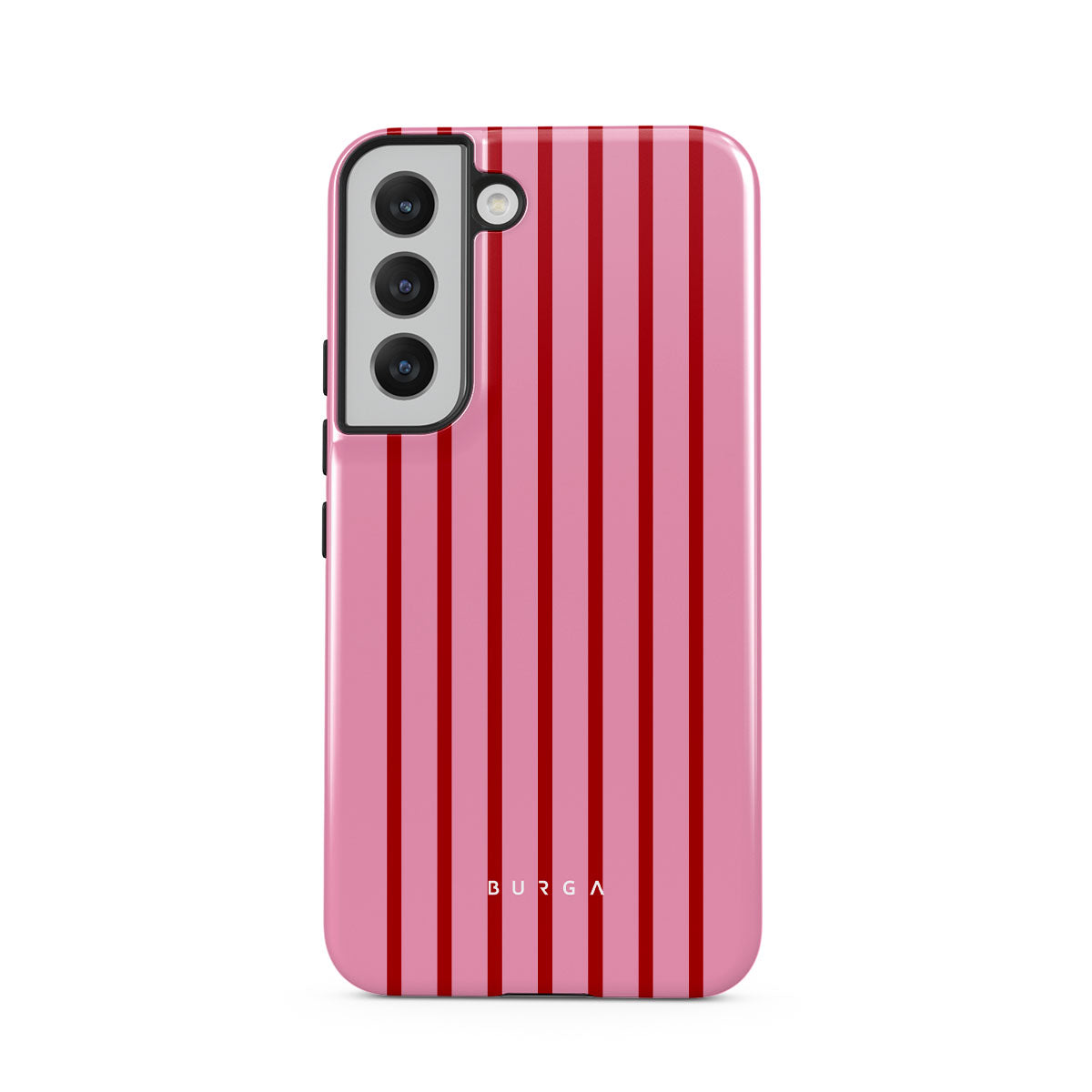 Step right up to the sweet charm of our Favorite Bikini Samsung Galaxy S22 phone case design. This vibrant array of pink and magenta stripes evokes memories of summer funfairs and whimsical candy canes.