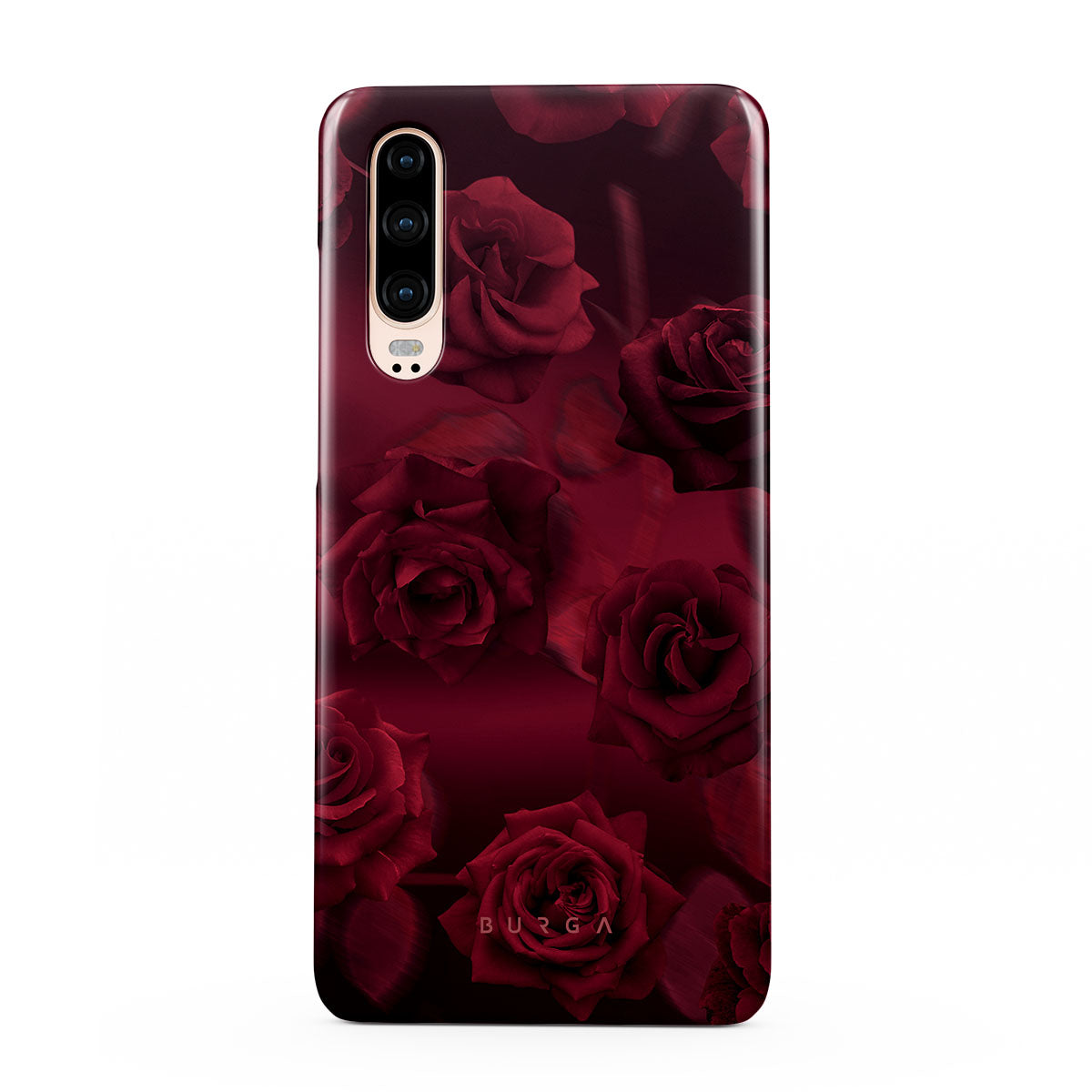 Dive into our intriguing Femme Fatale Huawei P30 phone case design. These deep red roses aren't just flowers—they're silent confessions of candlelit romance and moments caught in stolen glances. Crafted for those who captivate at every turn.