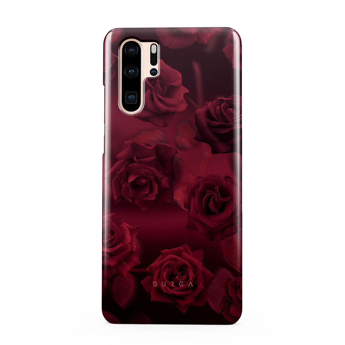 Dive into our intriguing Femme Fatale Huawei P30 Pro phone case design. These deep red roses aren't just flowers—they're silent confessions of candlelit romance and moments caught in stolen glances. Crafted for those who captivate at every turn.