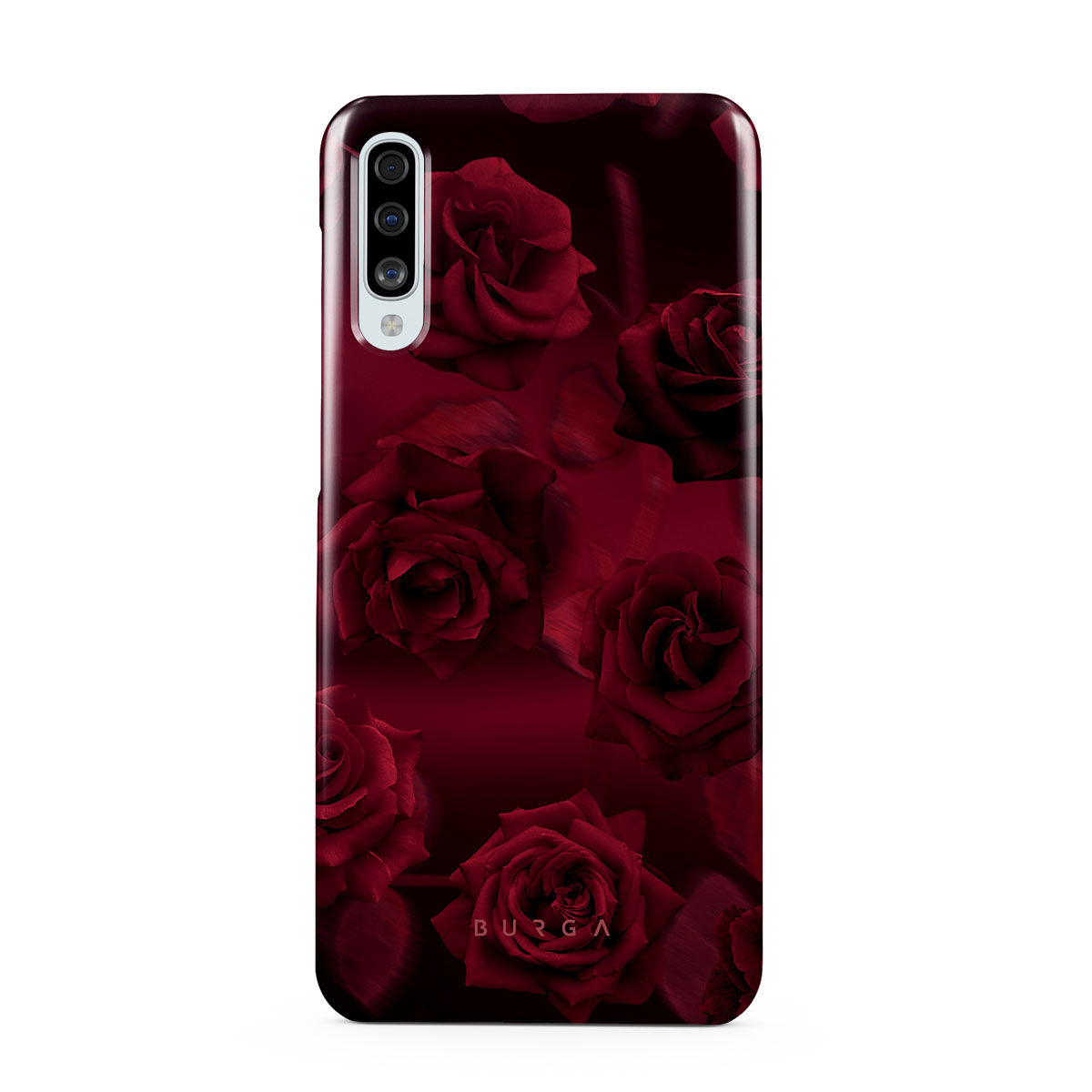 Dive into our intriguing Femme Fatale Samsung Galaxy A50 phone case design. These deep red roses aren't just flowers—they're silent confessions of candlelit romance and moments caught in stolen glances. Crafted for those who captivate at every turn.