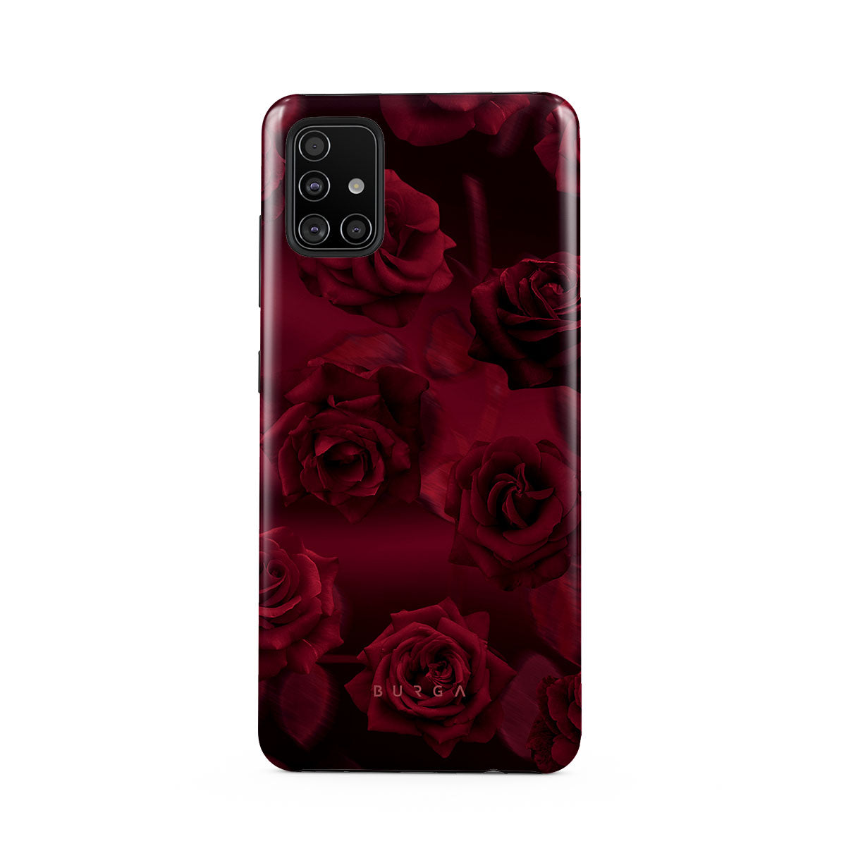 Dive into our intriguing Femme Fatale Samsung Galaxy A51 4G phone case design. These deep red roses aren't just flowers—they're silent confessions of candlelit romance and moments caught in stolen glances. Crafted for those who captivate at every turn.