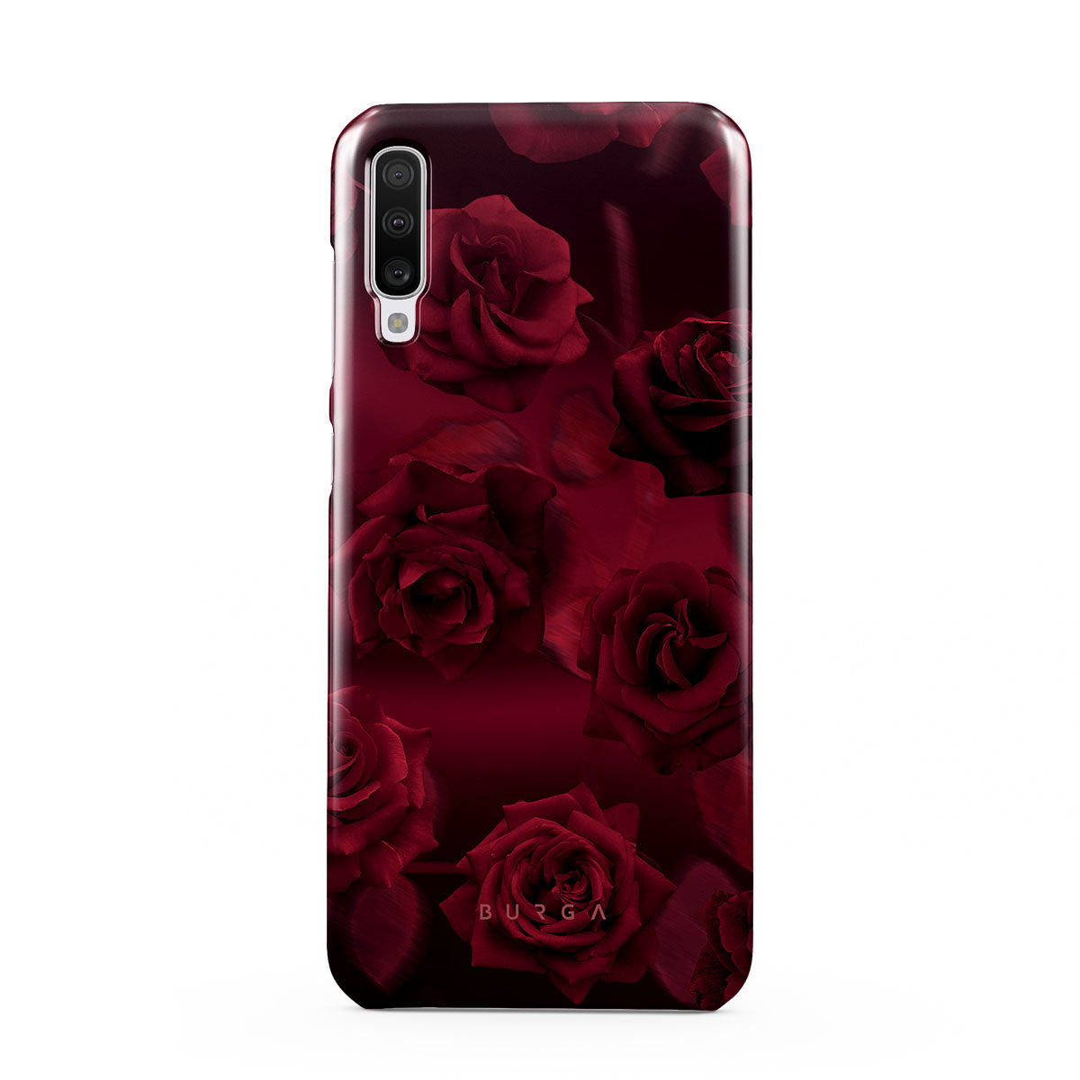 Dive into our intriguing Femme Fatale Samsung Galaxy A70 phone case design. These deep red roses aren't just flowers—they're silent confessions of candlelit romance and moments caught in stolen glances. Crafted for those who captivate at every turn.