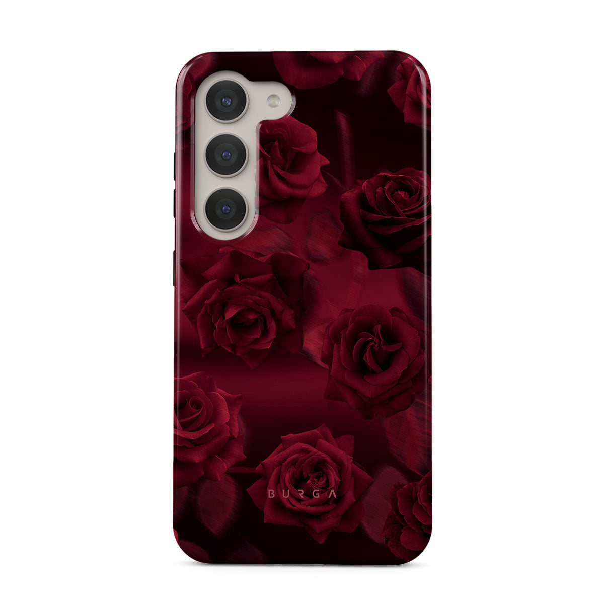 Dive into our intriguing Femme Fatale Samsung Galaxy S23 phone case design. These deep red roses aren't just flowers—they're silent confessions of candlelit romance and moments caught in stolen glances. Crafted for those who captivate at every turn.
