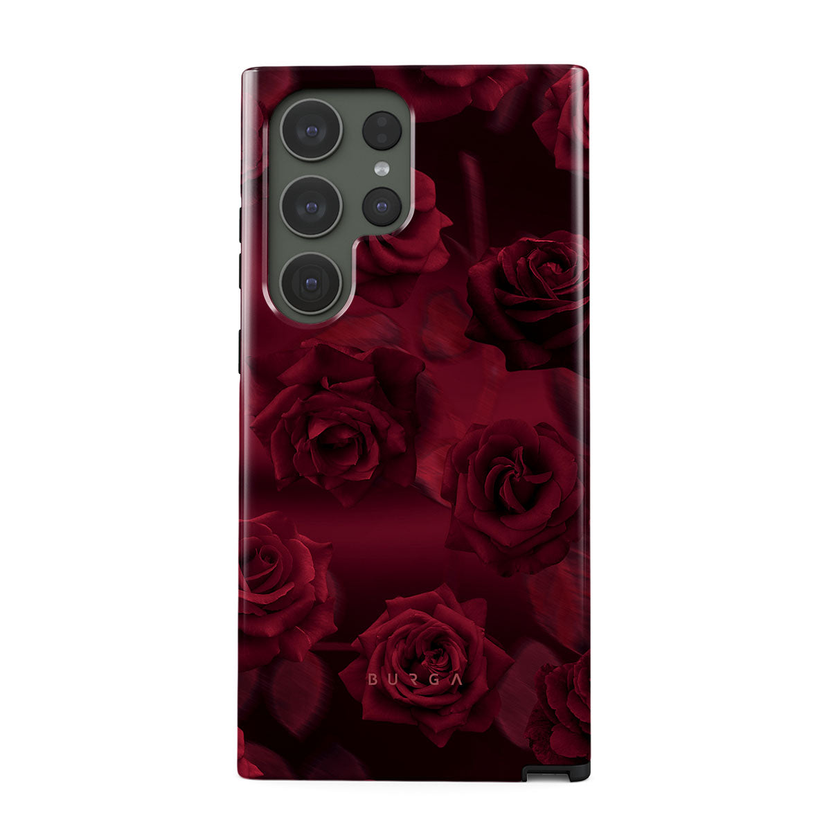 Dive into our intriguing Femme Fatale Samsung Galaxy S23 Ultra phone case design. These deep red roses aren't just flowers—they're silent confessions of candlelit romance and moments caught in stolen glances. Crafted for those who captivate at every turn.