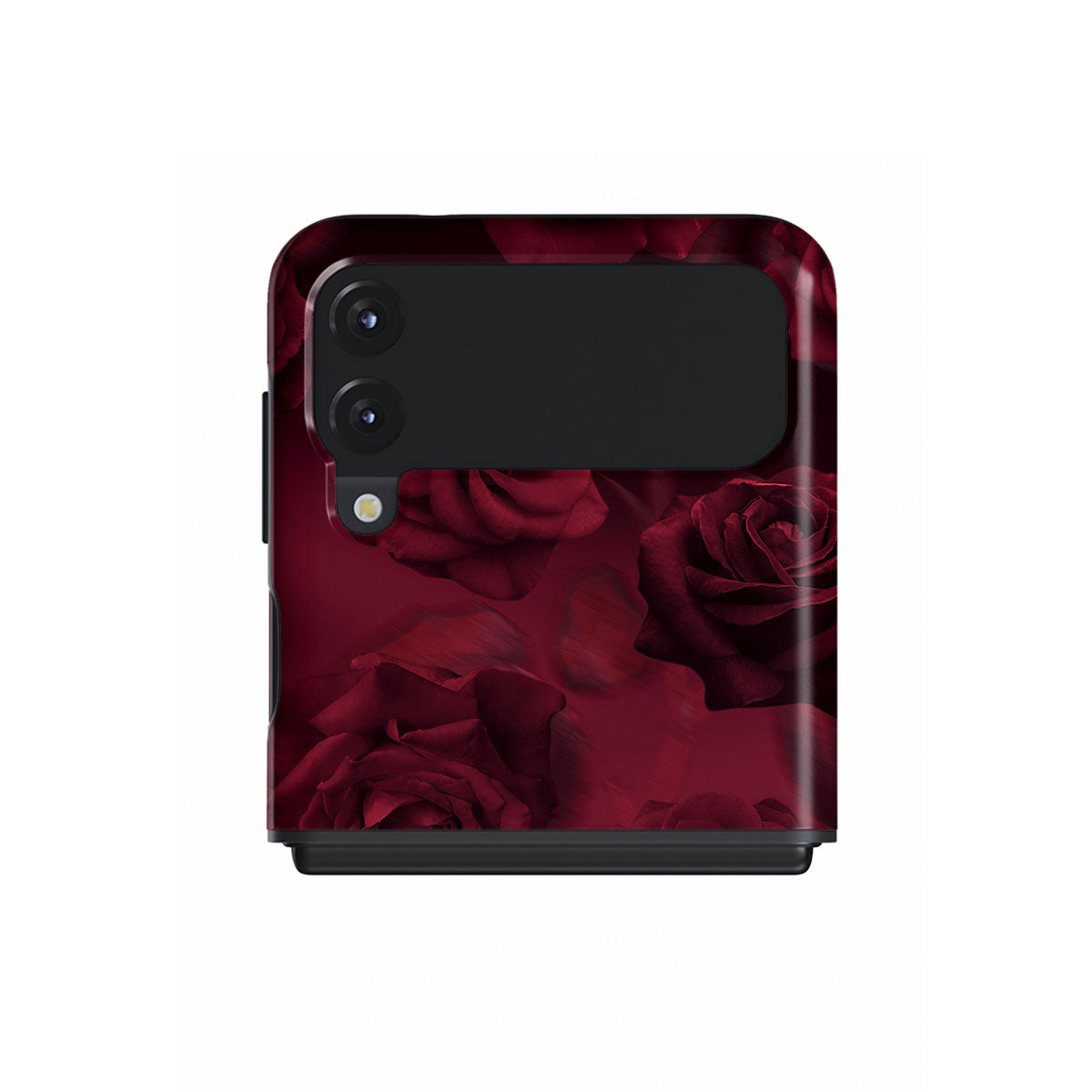 Dive into our intriguing Femme Fatale Samsung Galaxy Z Flip 3 phone case design. These deep red roses aren't just flowers—they're silent confessions of candlelit romance and moments caught in stolen glances. Crafted for those who captivate at every turn.