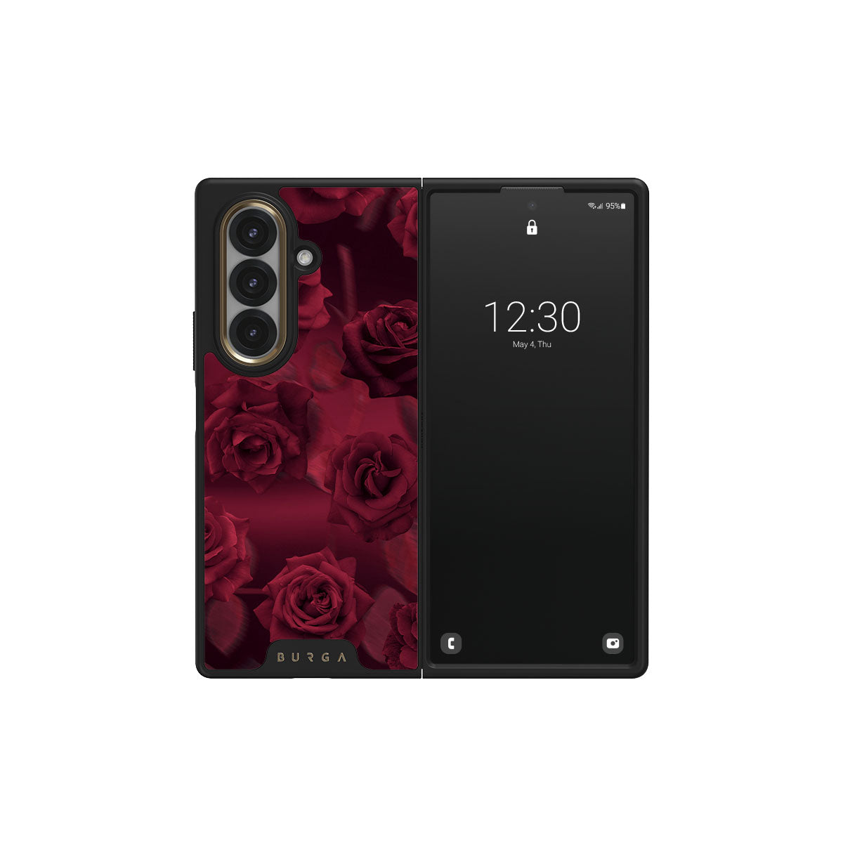 Dive into our intriguing Femme Fatale Samsung Galaxy Z Fold 7 phone case design. These deep red roses aren't just flowers—they're silent confessions of candlelit romance and moments caught in stolen glances. Crafted for those who captivate at every turn.