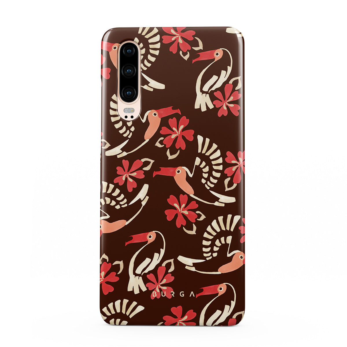 A jungle rave. Parrots, florals, bursts of red and cream—like someone threw a party in the rainforest and forgot to send you the invite. This Huawei P30 phone case design is your RSVP.