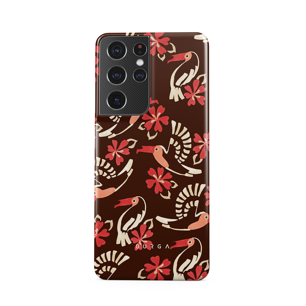 A jungle rave. Parrots, florals, bursts of red and cream—like someone threw a party in the rainforest and forgot to send you the invite. This Samsung Galaxy S21 Ultra phone case design is your RSVP.