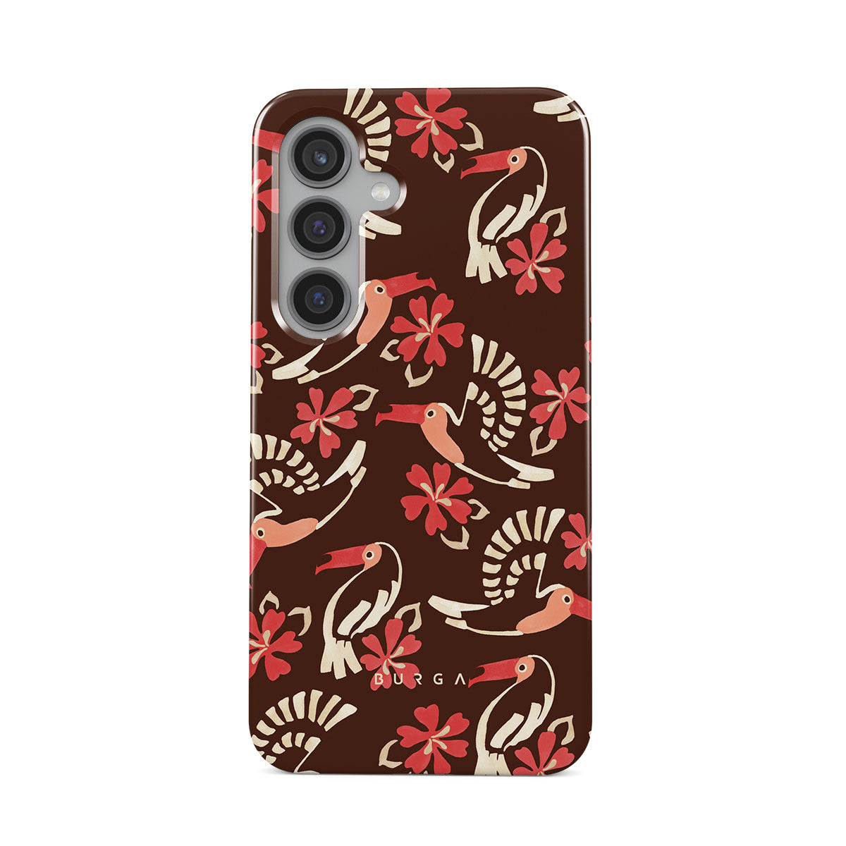 A jungle rave. Parrots, florals, bursts of red and cream—like someone threw a party in the rainforest and forgot to send you the invite. This Samsung Galaxy S24 Plus phone case design is your RSVP.