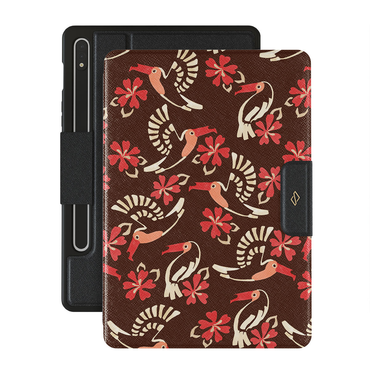 A jungle rave. Parrots, florals, bursts of red and cream—like someone threw a party in the rainforest and forgot to send you the invite. This Samsung Galaxy Tab S10+ design is your RSVP.