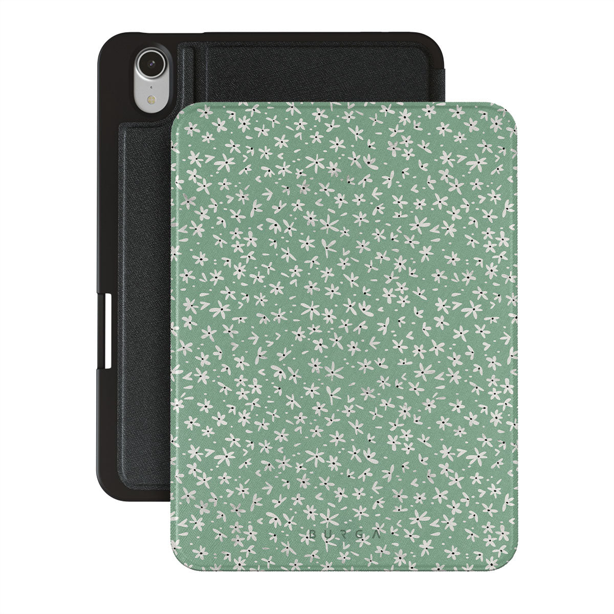 Our minimalistic floral Lush Meadows iPad Mini 8.3 (A17 Pro/6th Gen) 2021 folio case is inspired by the green fields covered in petite and dainty flowers. The soft green iPad case cover with a delicate floral pattern creates a perfect feminine design that will fit every occasion.