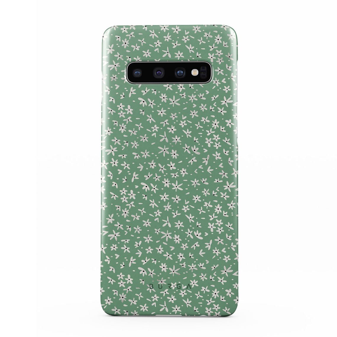 Our minimalistic floral Lush Meadows Samsung Galaxy S10 Plus phone case is inspired by the green fields covered in petite and dainty flowers. The soft green phone case with a delicate floral pattern creates a perfect feminine design that will fit every occasion.