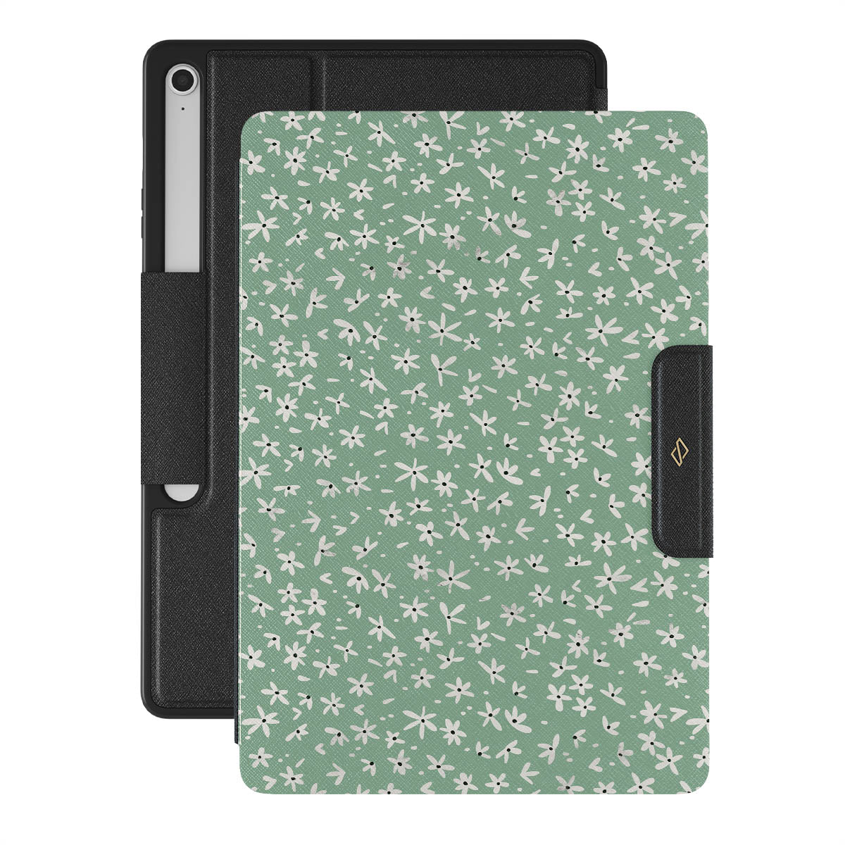Our minimalistic floral Lush Meadows Samsung Galaxy Tab S10+ FE folio case is inspired by the green fields covered in petite and dainty flowers. The soft green Galaxy Tab case cover with a delicate floral pattern creates a perfect feminine design that will fit every occasion.