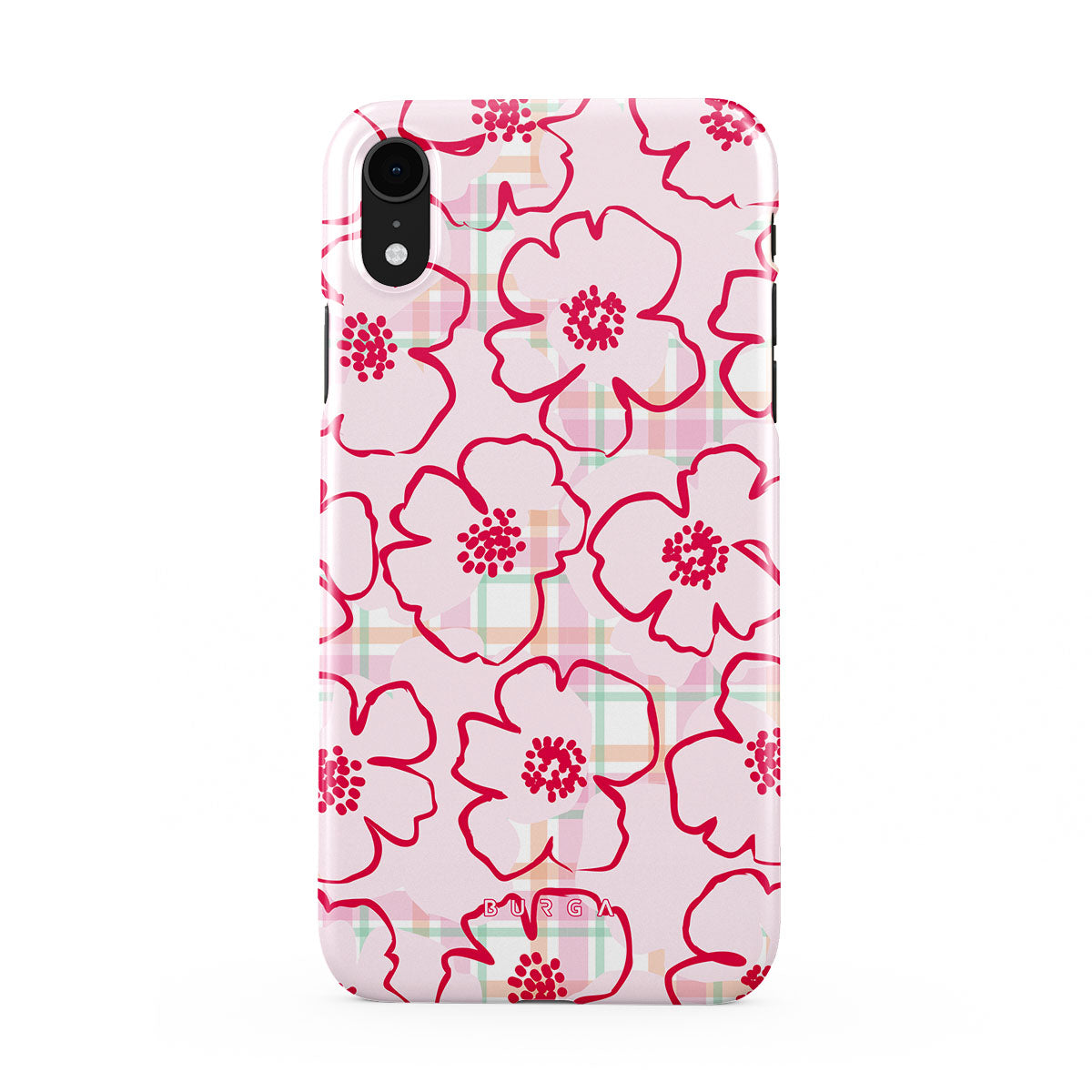 Pink flowers bloom from this iPhone XR phone case design—just like the ones you’d pick and put in your hair, simple and pretty, turning every walk through the garden into a fairy tale.