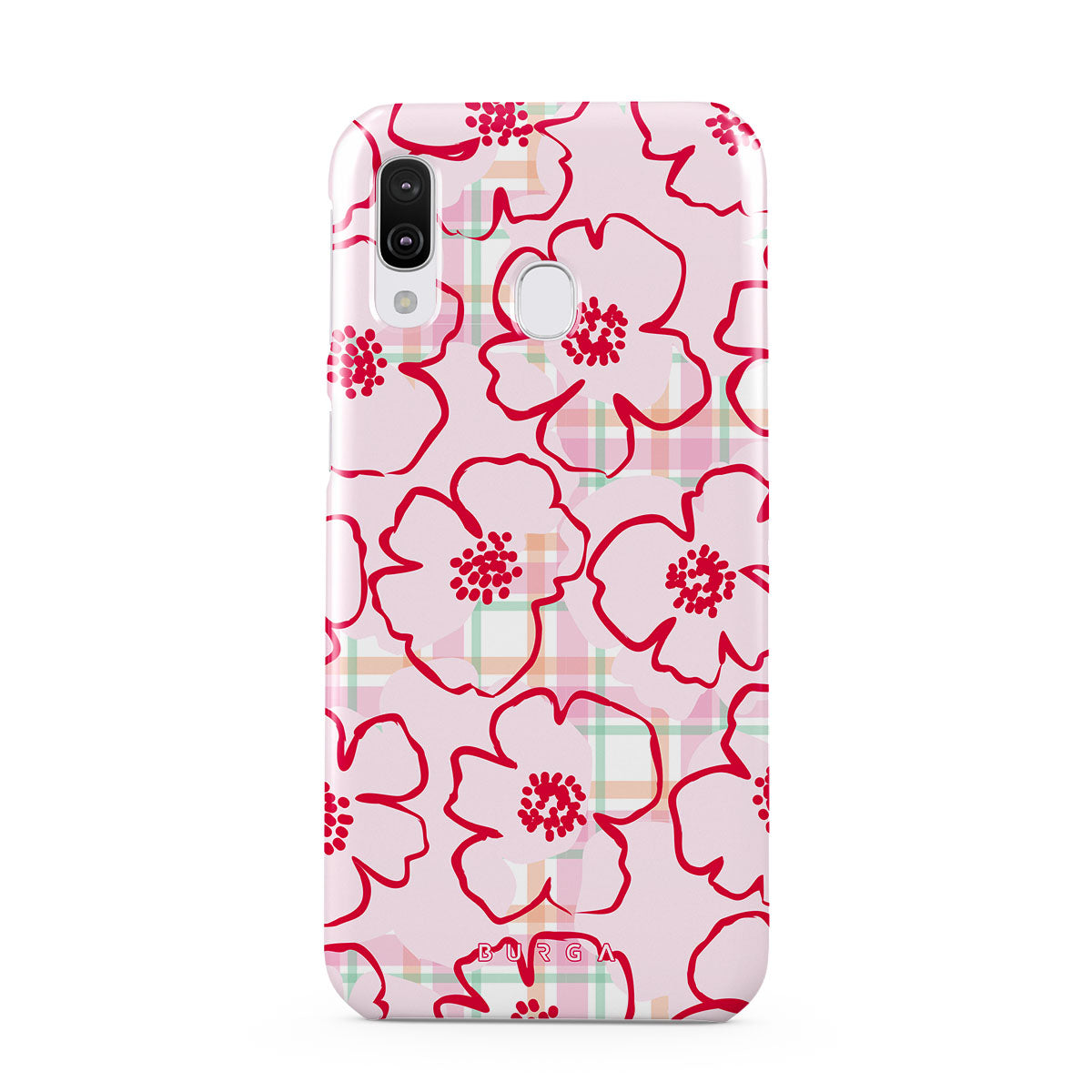 Pink flowers bloom from this Samsung Galaxy A40 phone case design—just like the ones you’d pick and put in your hair, simple and pretty, turning every walk through the garden into a fairy tale.