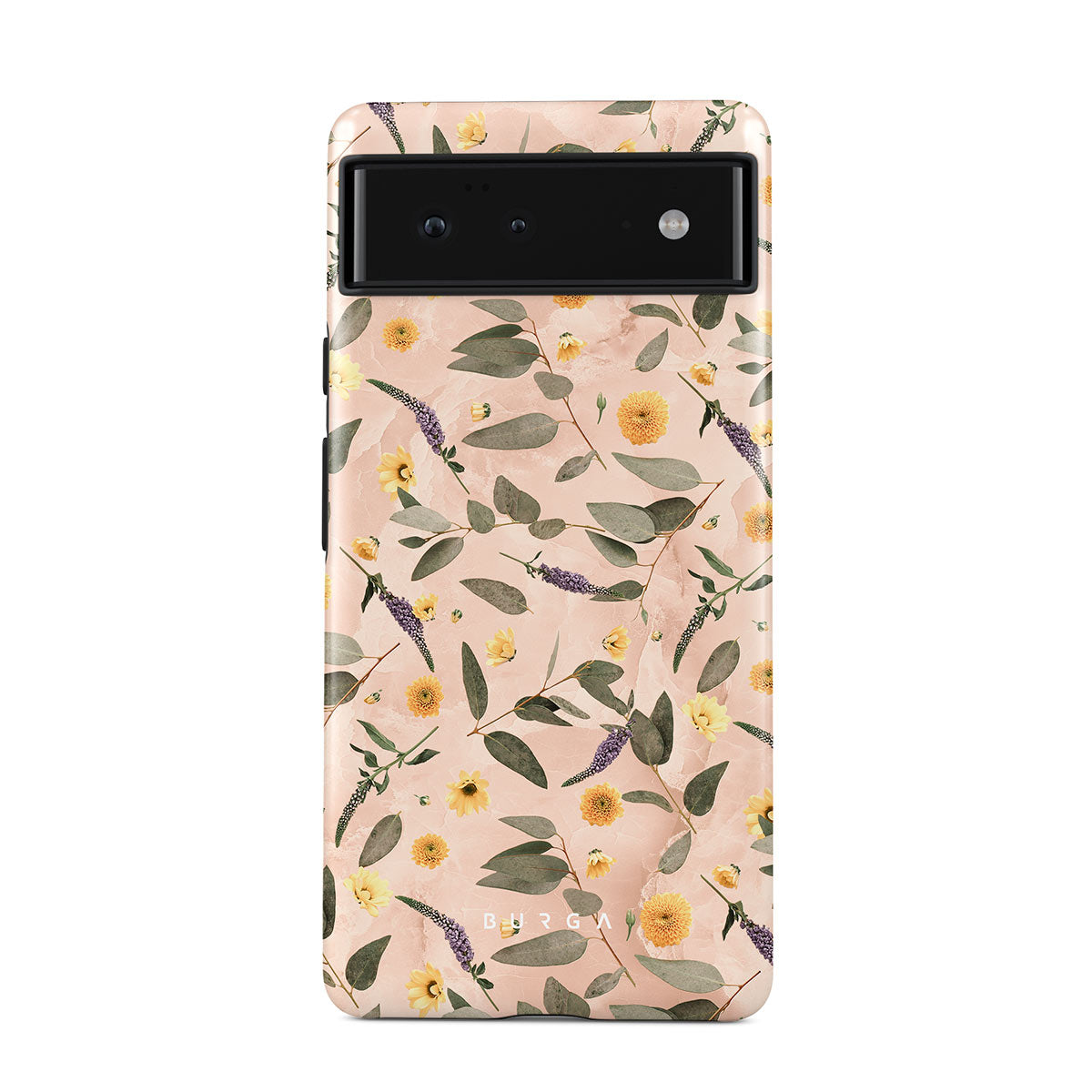 Sunday Brunch Google Pixel 6a phone case features a timeless flower pattern. The soft-toned case with a pop of lavender and yellow colors will add a splash of energy to your style while protecting your phone from dangerous falls.