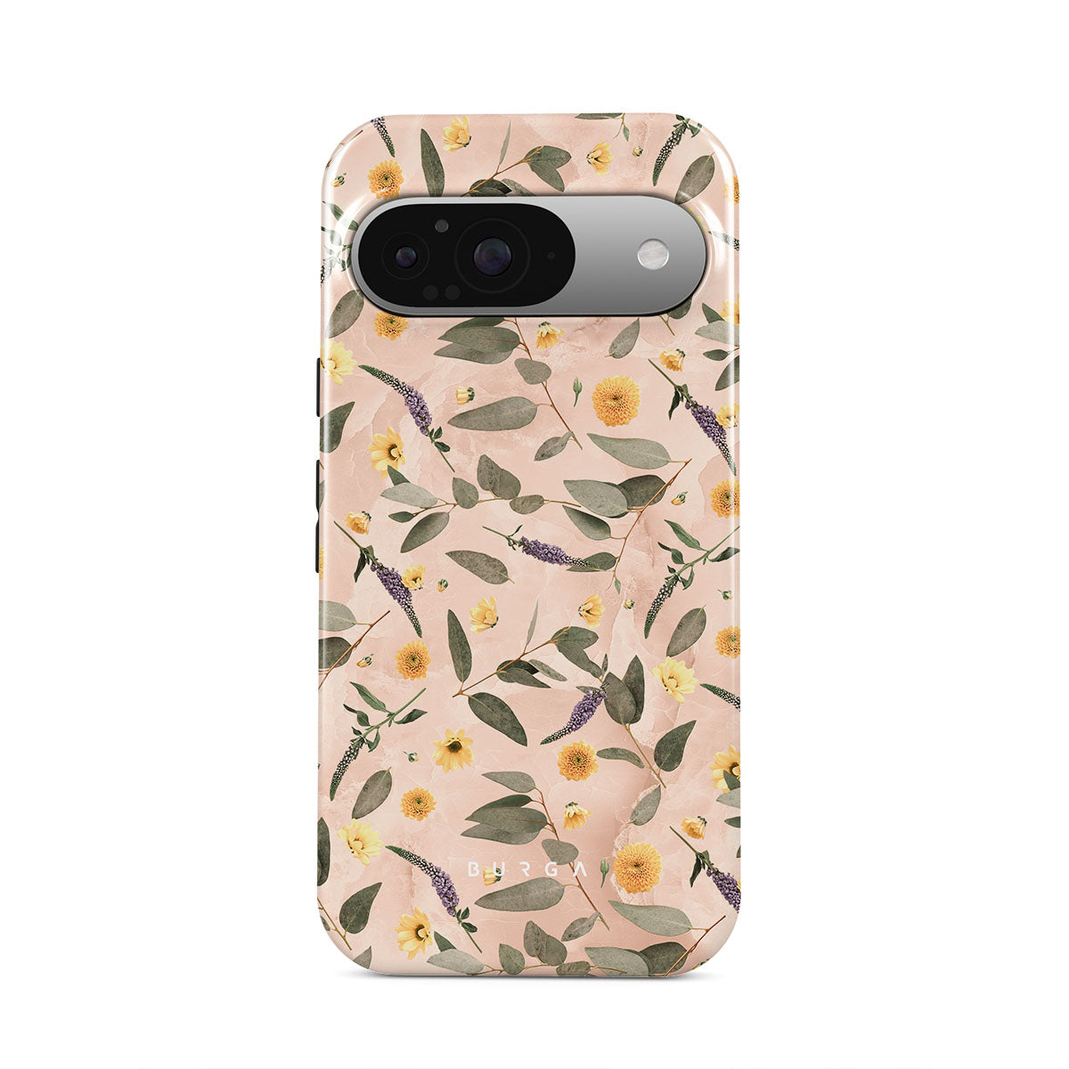 Sunday Brunch Google Pixel 9 phone case features a timeless flower pattern. The soft-toned case with a pop of lavender and yellow colors will add a splash of energy to your style while protecting your phone from dangerous falls.