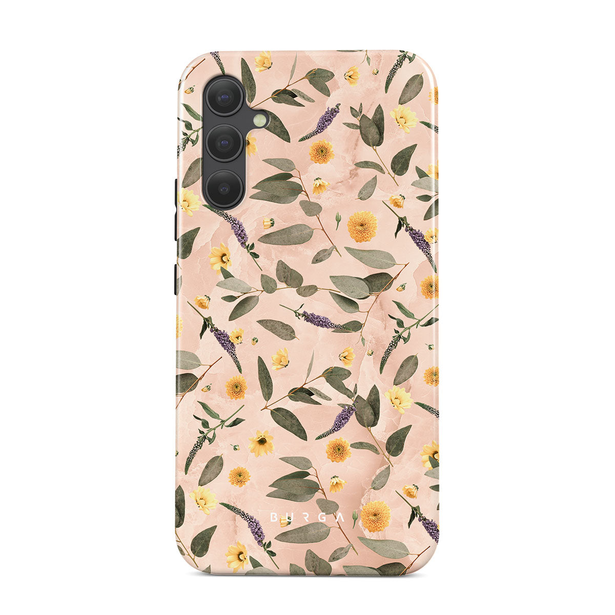 Sunday Brunch Samsung Galaxy A34 phone case features a timeless flower pattern. The soft-toned case with a pop of lavender and yellow colors will add a splash of energy to your style while protecting your phone from dangerous falls.