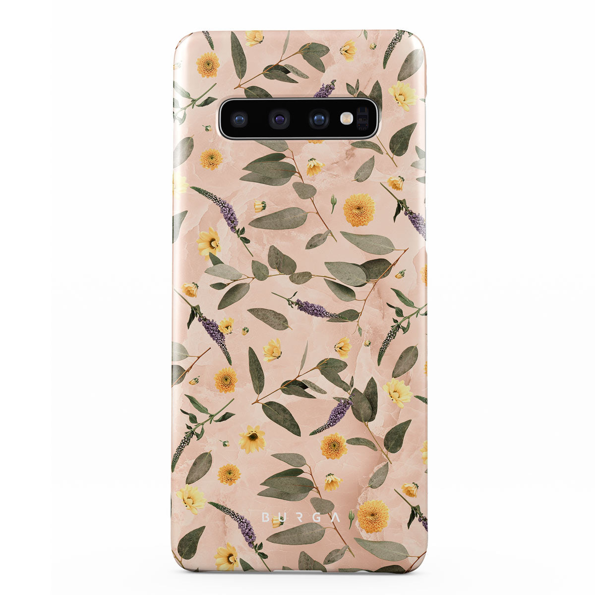 Sunday Brunch Samsung Galaxy S10 Plus phone case features a timeless flower pattern. The soft-toned case with a pop of lavender and yellow colors will add a splash of energy to your style while protecting your phone from dangerous falls.