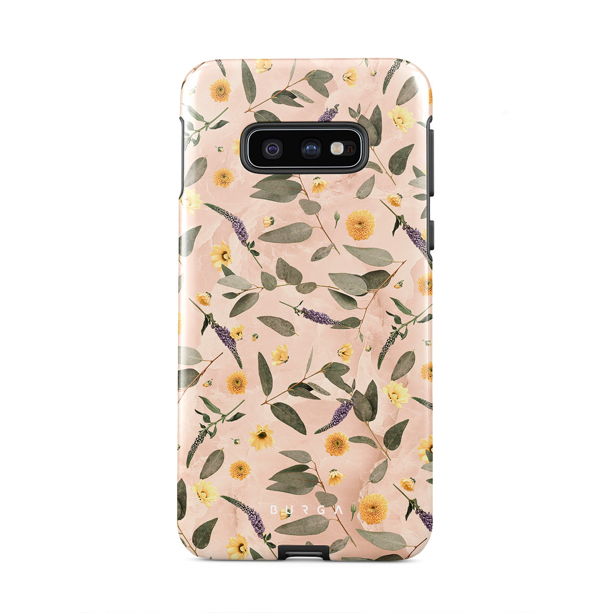 Sunday Brunch Samsung Galaxy S10E phone case features a timeless flower pattern. The soft-toned case with a pop of lavender and yellow colors will add a splash of energy to your style while protecting your phone from dangerous falls.