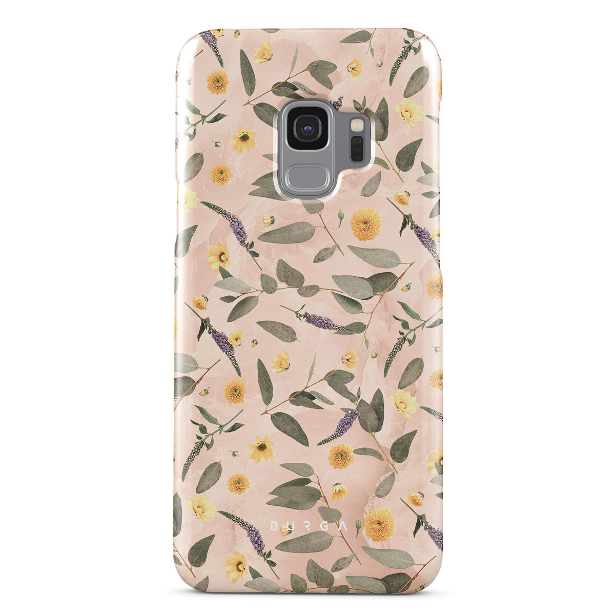 Sunday Brunch Samsung Galaxy S9 phone case features a timeless flower pattern. The soft-toned case with a pop of lavender and yellow colors will add a splash of energy to your style while protecting your phone from dangerous falls.