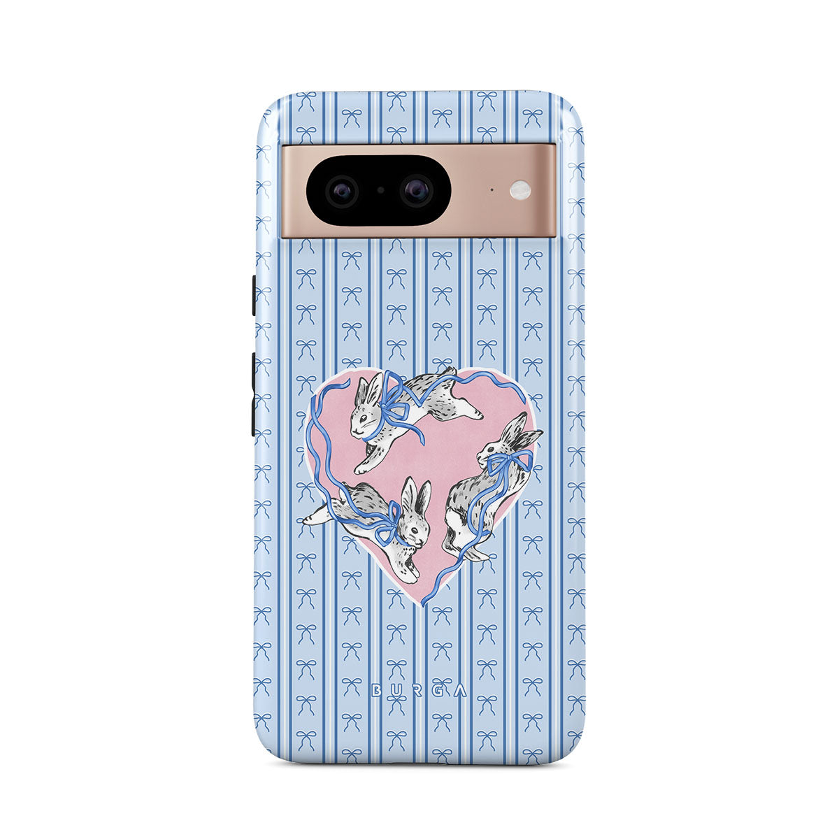 They run, you chase. Or maybe you run, and they chase you. The Follow Me Google Pixel 8 phone case design is an eternal loop—white rabbits tangled in pink ribbons, leading you somewhere unknown. Or maybe, somewhere you’ve already been.
