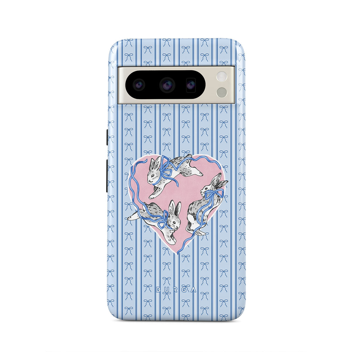 They run, you chase. Or maybe you run, and they chase you. The Follow Me Google Pixel 8 Pro phone case design is an eternal loop—white rabbits tangled in pink ribbons, leading you somewhere unknown. Or maybe, somewhere you’ve already been.