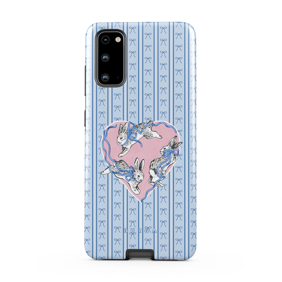 They run, you chase. Or maybe you run, and they chase you. The Follow Me Samsung Galaxy S20 FE 4G / 5G phone case design is an eternal loop—white rabbits tangled in pink ribbons, leading you somewhere unknown. Or maybe, somewhere you’ve already been.