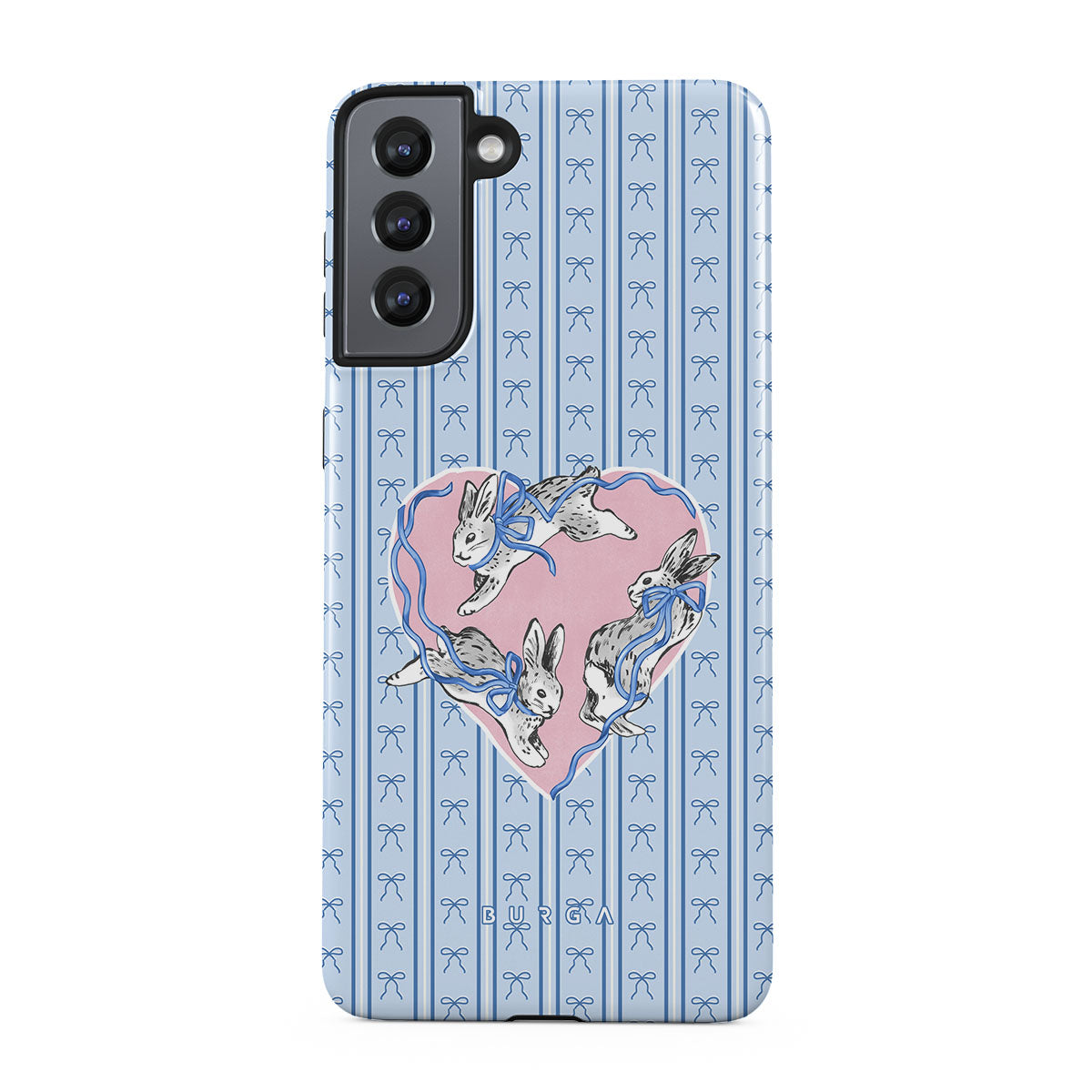 They run, you chase. Or maybe you run, and they chase you. The Follow Me Samsung Galaxy S21 phone case design is an eternal loop—white rabbits tangled in pink ribbons, leading you somewhere unknown. Or maybe, somewhere you’ve already been.