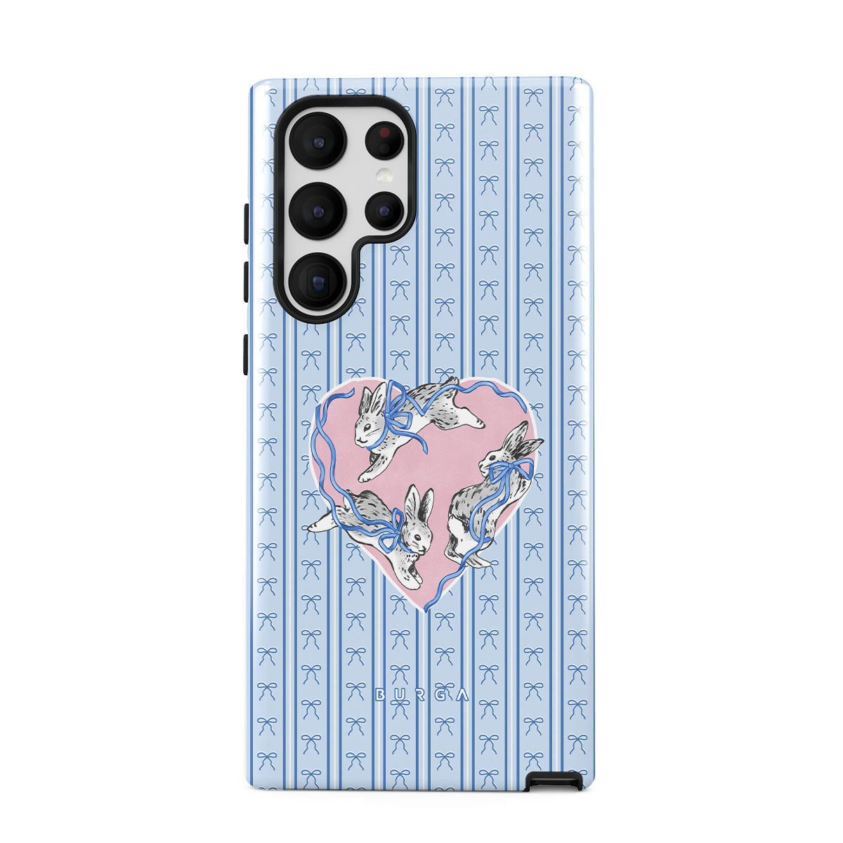 They run, you chase. Or maybe you run, and they chase you. The Follow Me Samsung Galaxy S22 Ultra phone case design is an eternal loop—white rabbits tangled in pink ribbons, leading you somewhere unknown. Or maybe, somewhere you’ve already been.