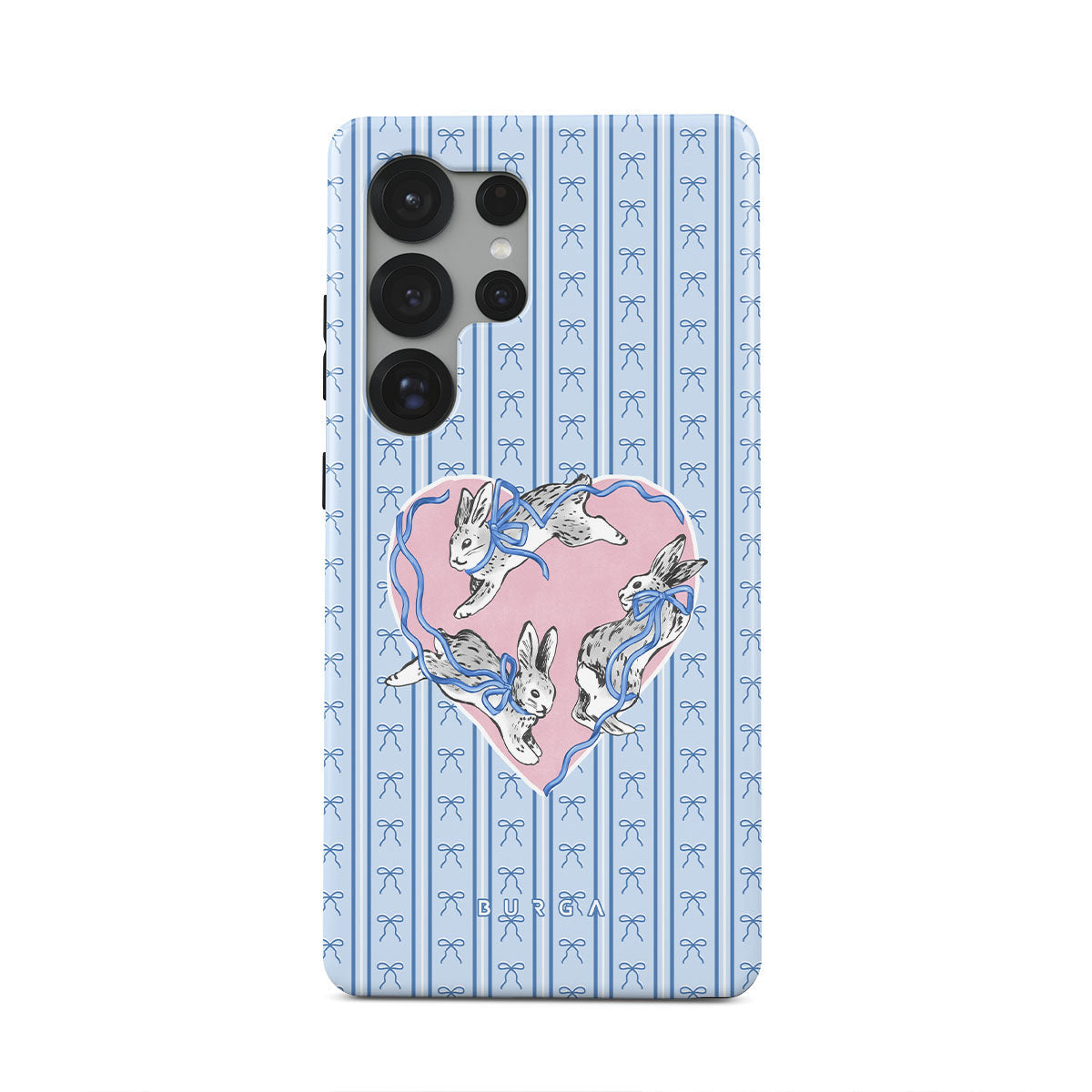 They run, you chase. Or maybe you run, and they chase you. The Follow Me Samsung Galaxy S25 Ultra phone case design is an eternal loop—white rabbits tangled in pink ribbons, leading you somewhere unknown. Or maybe, somewhere you’ve already been.