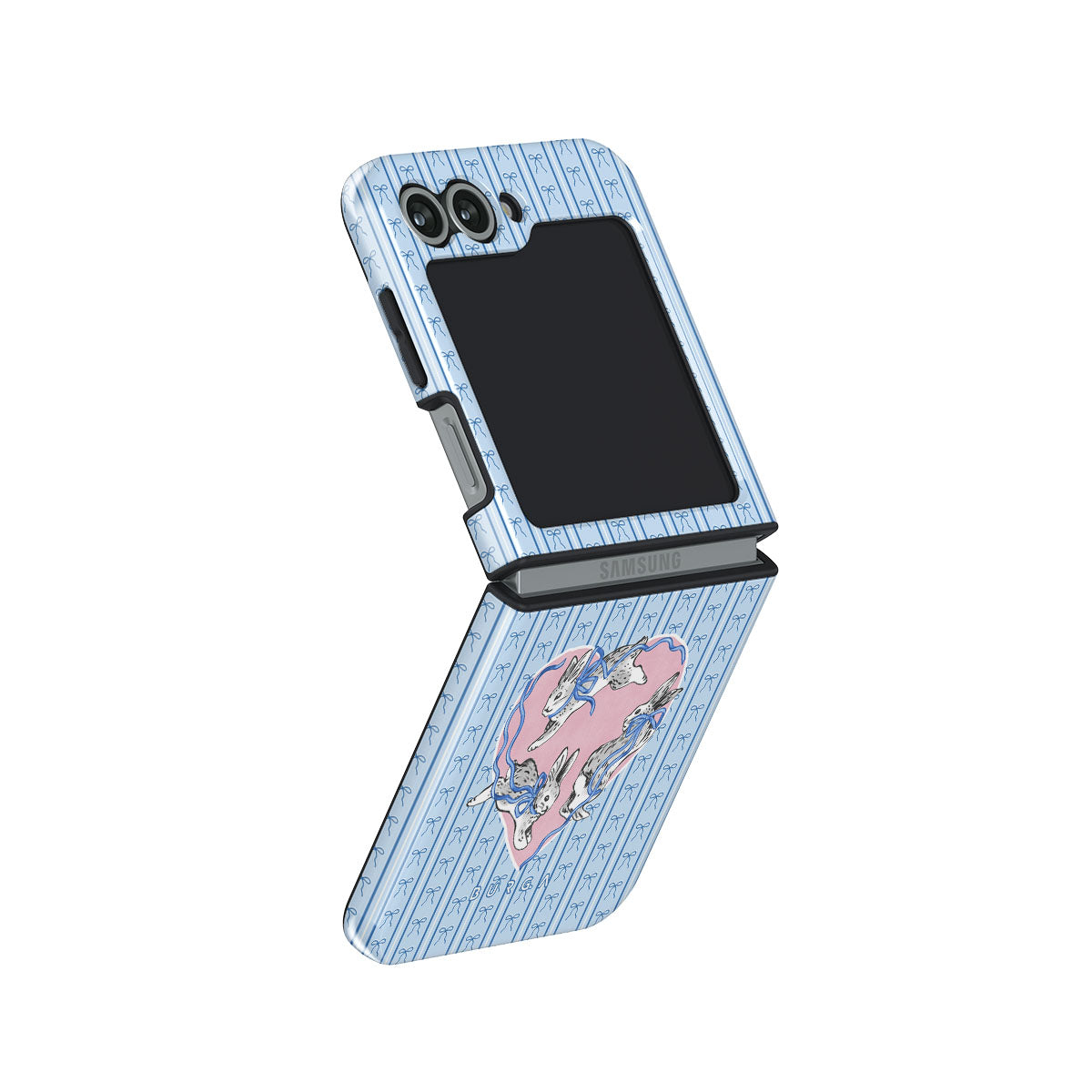 They run, you chase. Or maybe you run, and they chase you. The Follow Me Samsung Galaxy Z Flip 6 phone case design is an eternal loop—white rabbits tangled in pink ribbons, leading you somewhere unknown. Or maybe, somewhere you’ve already been.