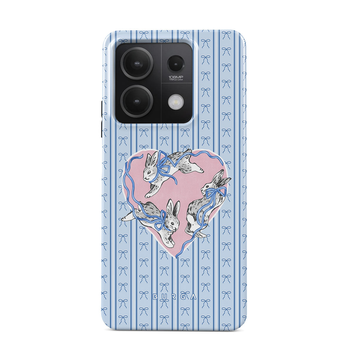 They run, you chase. Or maybe you run, and they chase you. The Follow Me Xiaomi Redmi Note 13 5G phone case design is an eternal loop—white rabbits tangled in pink ribbons, leading you somewhere unknown. Or maybe, somewhere you’ve already been.