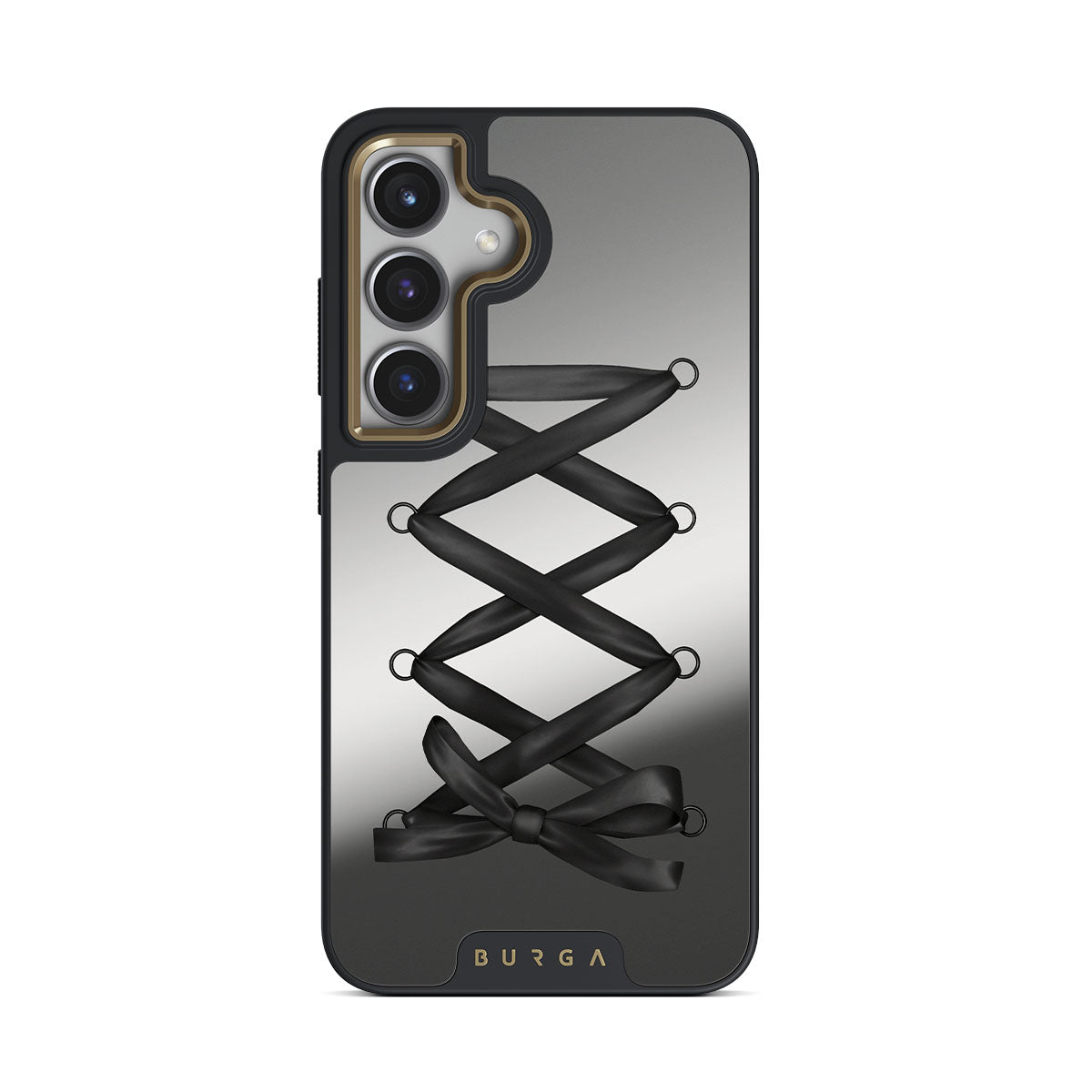 Laced up with sleek black ribbons, this Samsung Galaxy S24 phone case design is all about the art of restraint—and the thrill of breaking it. Forbidden plays with the edge of control, wrapping your desires in layers of mystery. Wear it as a reminder that some rules were made to be broken.