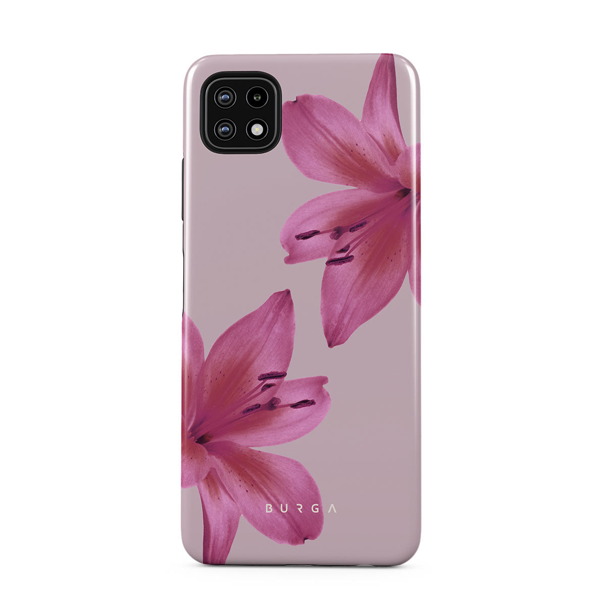 A gentle hush of pink forms where soft lilies sway. Their tender petals — a silent ode to the delicate dance of life. The Fragile Beauty Samsung Galaxy A22 5G phone case design invites you to lean into the soft embrace of nature, letting its subtle rhythms guide your journey.