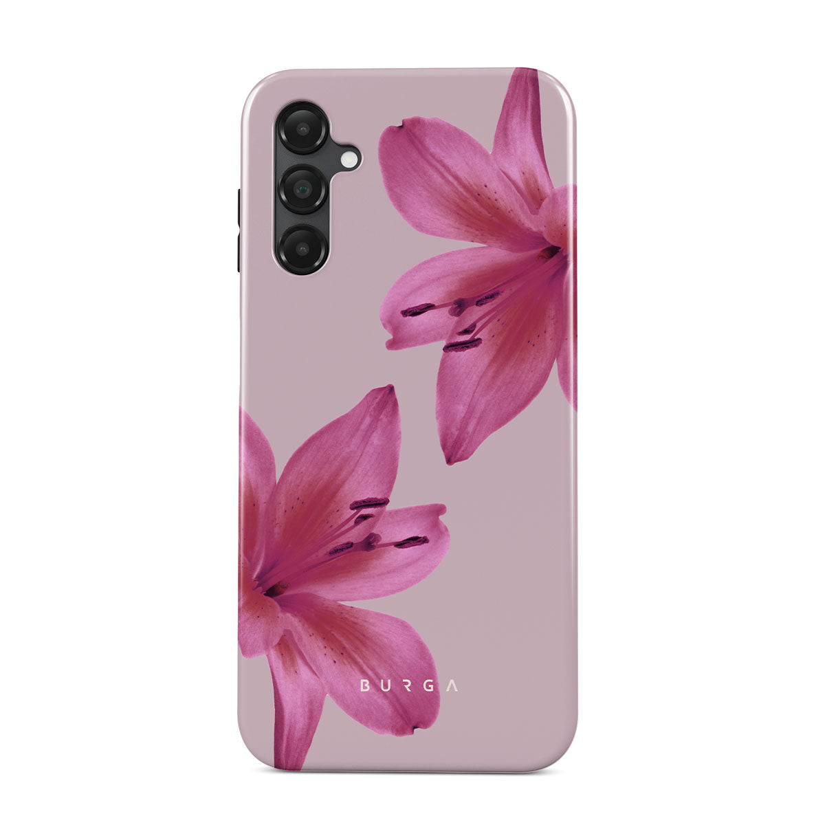 A gentle hush of pink forms where soft lilies sway. Their tender petals — a silent ode to the delicate dance of life. The Fragile Beauty Samsung Galaxy A25 phone case design invites you to lean into the soft embrace of nature, letting its subtle rhythms guide your journey.