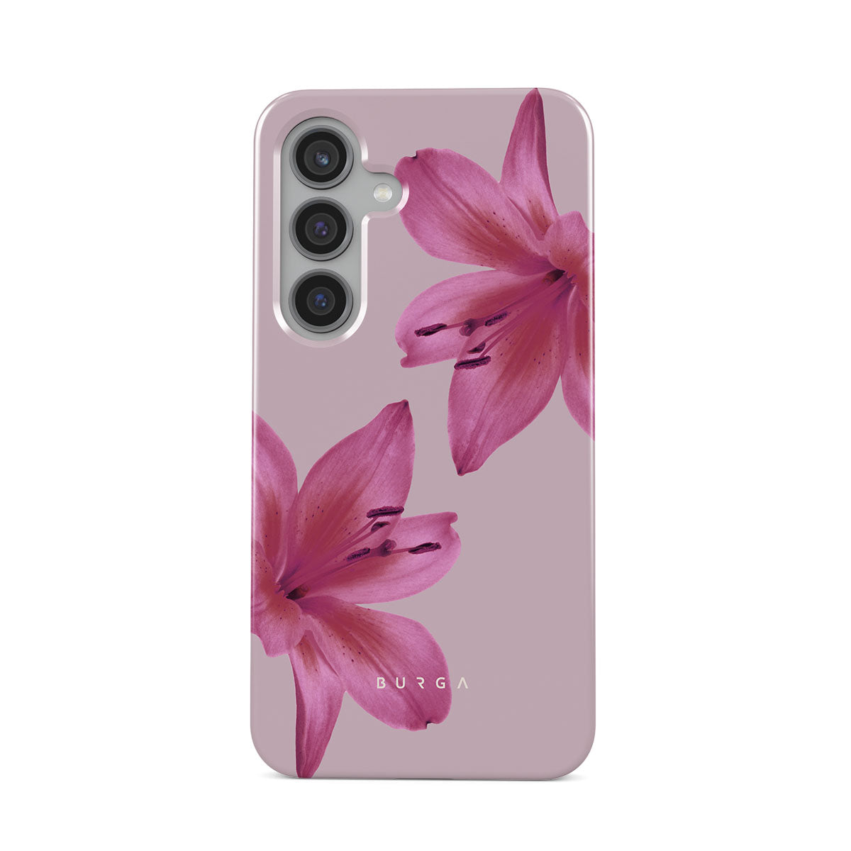A gentle hush of pink forms where soft lilies sway. Their tender petals — a silent ode to the delicate dance of life. The Fragile Beauty Samsung Galaxy S24 phone case design invites you to lean into the soft embrace of nature, letting its subtle rhythms guide your journey.