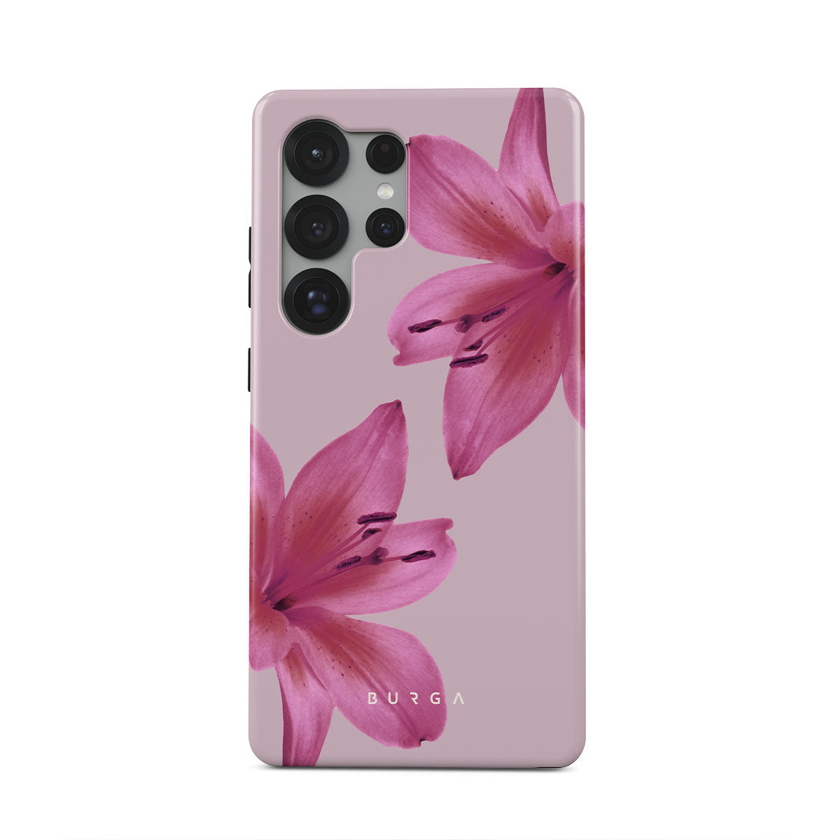 A gentle hush of pink forms where soft lilies sway. Their tender petals — a silent ode to the delicate dance of life. The Fragile Beauty Samsung Galaxy S25 Ultra phone case design invites you to lean into the soft embrace of nature, letting its subtle rhythms guide your journey.