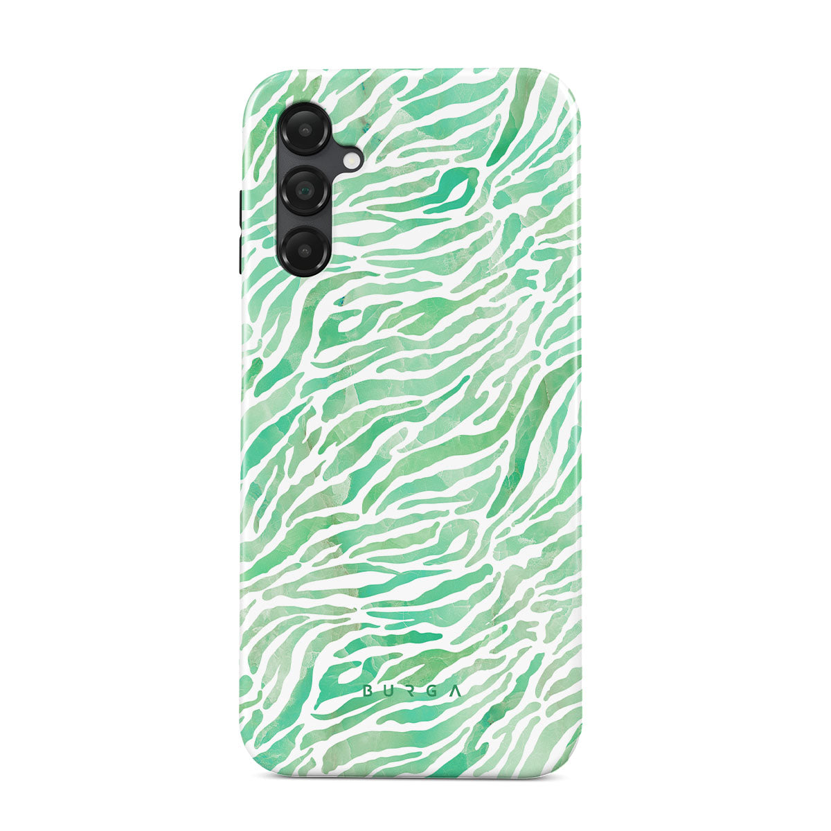 Our Free Spirit Samsung Galaxy A14 5G phone case features an exotic zebra pattern in varying shades of green. Keep your spirits up, as there is no need to worry about your phone, as this trendy case is not only pretty but offers the heavy-duty protection that your cellphone requires.